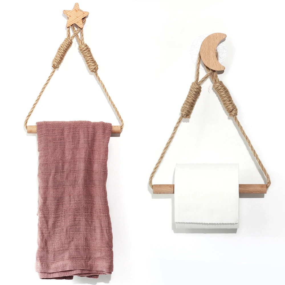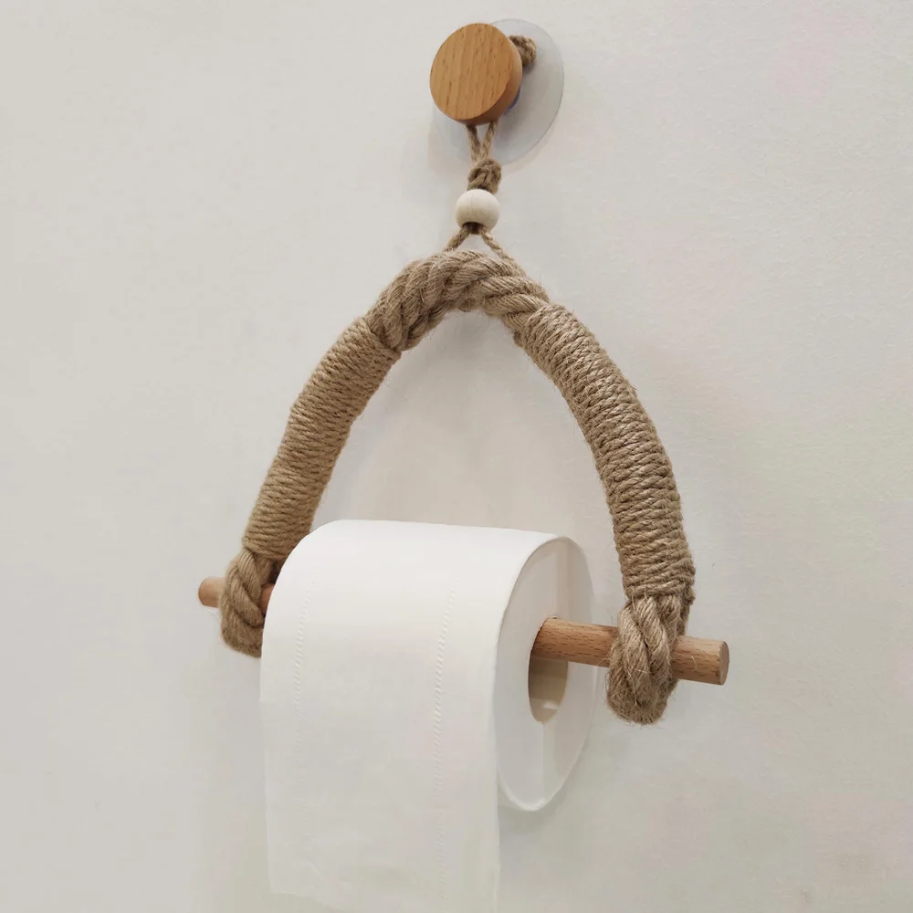 Настенная подвесная деревянная держатель для бумаги, держатель для спальни, гостиной, унитаза, украшение ручной работы, del hogarБумажная стойка в комплекте: бумажная стойка + аксессуарыМатериал: дерево + плетеная веревка + аксессуары для оборудованияВес: 100 грамм