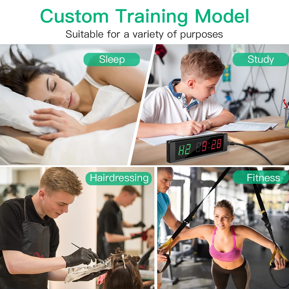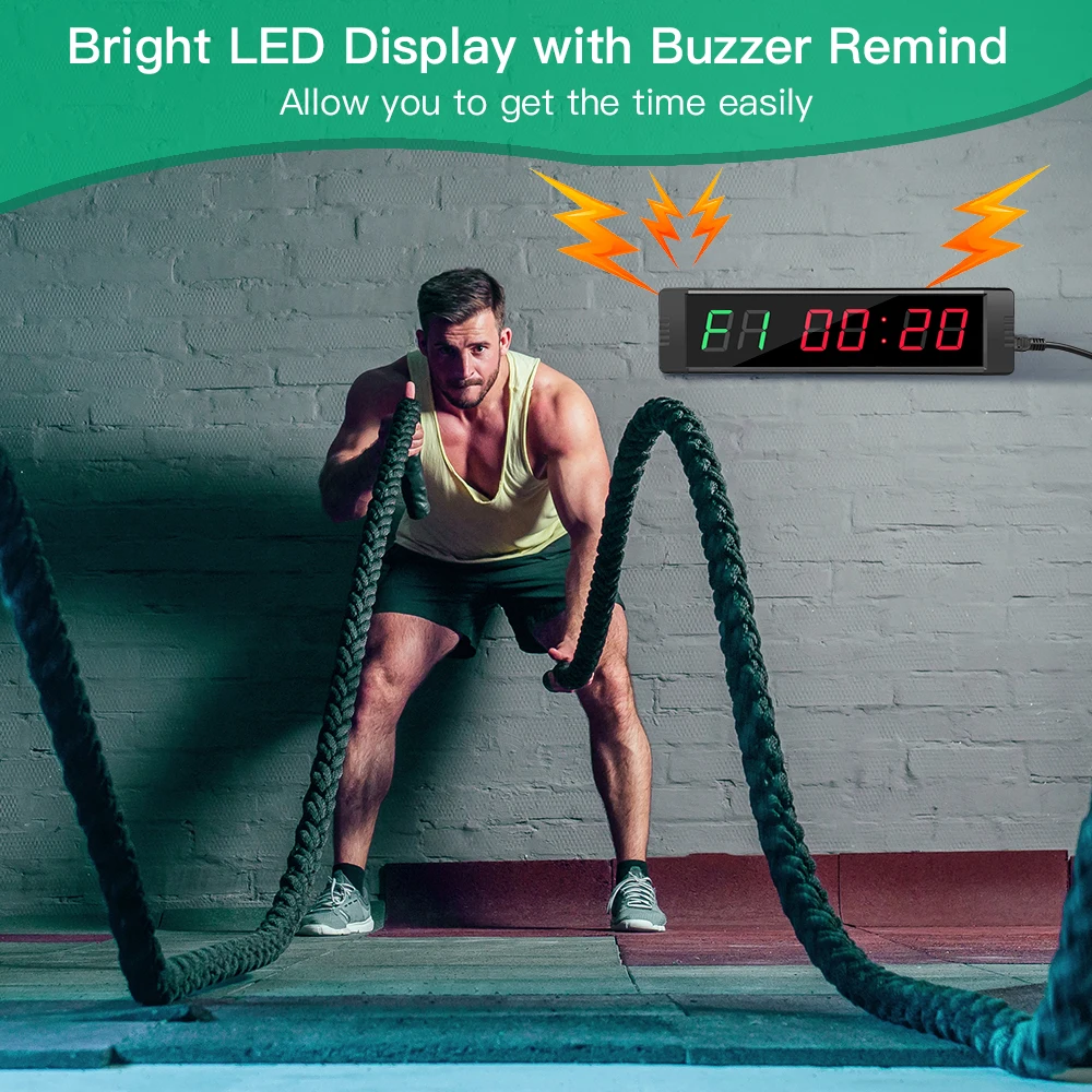 Программируемый светодиодный таймер с дистанционным управлением, интервальный таймер для кроссфита, таймер для гаража, спортивные тренировочные часы, таймер для спортзала Особенности: Простота в эксплуатации с помощью пульта дистанционного управления.Он может показывать время суток с 12 и 24 часами времени.Он может countup и обратный отсчет в течение нескольких минут: секунд.Можно установить как секундомер.Наиболее важная функция может установить время тренировки и время отдыха. Вы можете установить группы времени обучения и времени отдыха. Он также может нажимать кнопки 0 ~ 9 цифр, чтобы сохранить заданное значение. Основные функции:: Межсетевое взаимодействие с чч: мм формат-12/24 часа в суткиСекундомер: мм: SS:ss(1/10s)(1/100 s) Формат-от 00:00:00 до 99:59:99Обратный отсчет/вверх: мм: SS-от 00:00 до 99:59Интервальный таймер-тренировка/отдых/циклРежим Табата. Означает работу 20 с, отдых 10 с, 8 циклов.Режим FGB1. Означает 5 мин работы, 1 мин отдыха, 5 циклов.Режим FGB2. Означает 5 мин работы, 1 мин отдыха, 3 круга. Характеристики:Цвет: черныйМатериал корпуса: металлКрепление: настенное крепление ручной стойки на столеРазмер: 215*55*20 мм/8,4*2,1*0,8 дюймовВходная мощность: 110-240 В переменного тока 50-60 Гц/0.15AВыходная мощность: 5 В постоянного тока Посылка включает в себя: