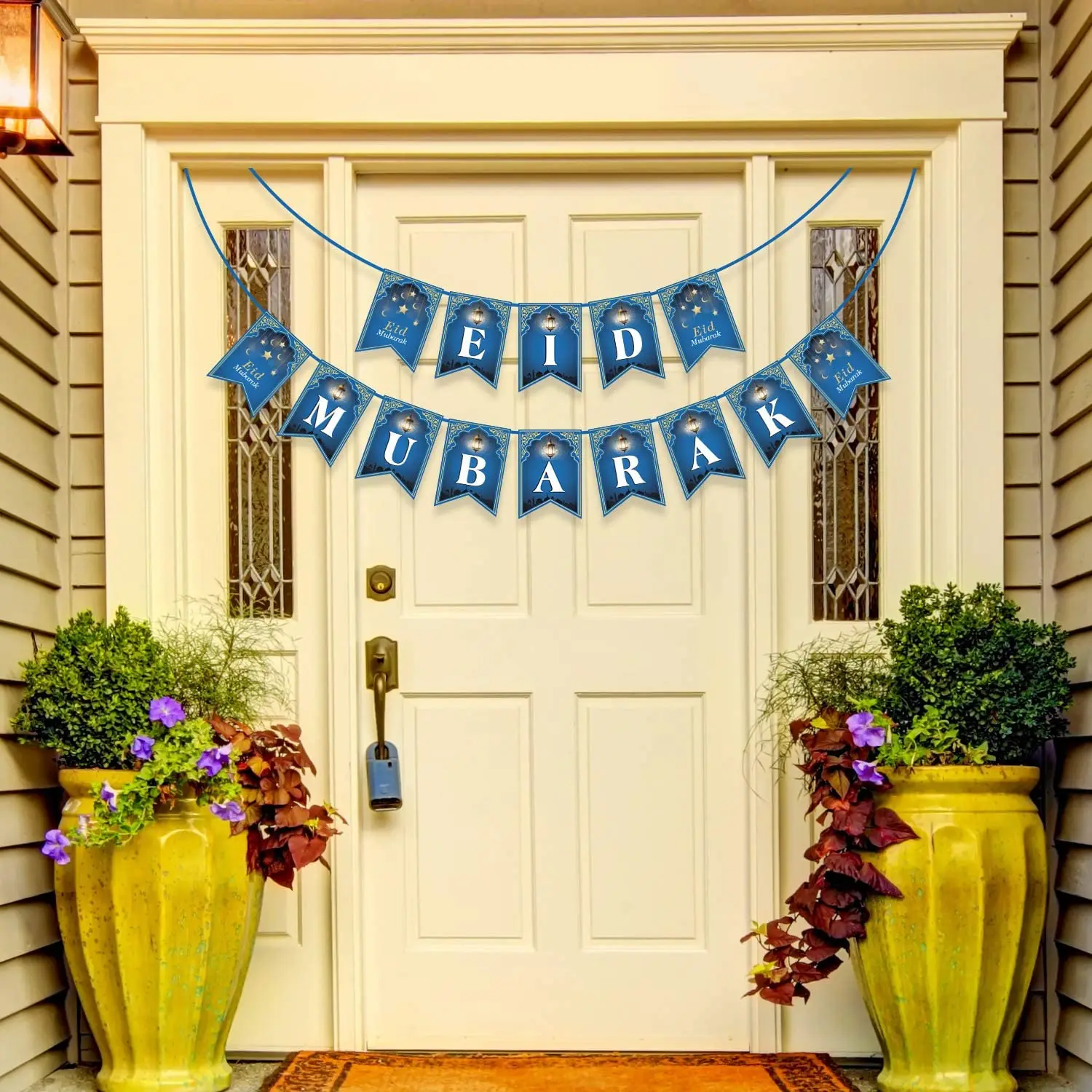 Коллекция 2022 года, ярко-синие аксессуары Eid Mubarak, мусульманский Рамадан, украшение для дома, настенный баннер, праздничная Вечеринка Eid al-Fitr