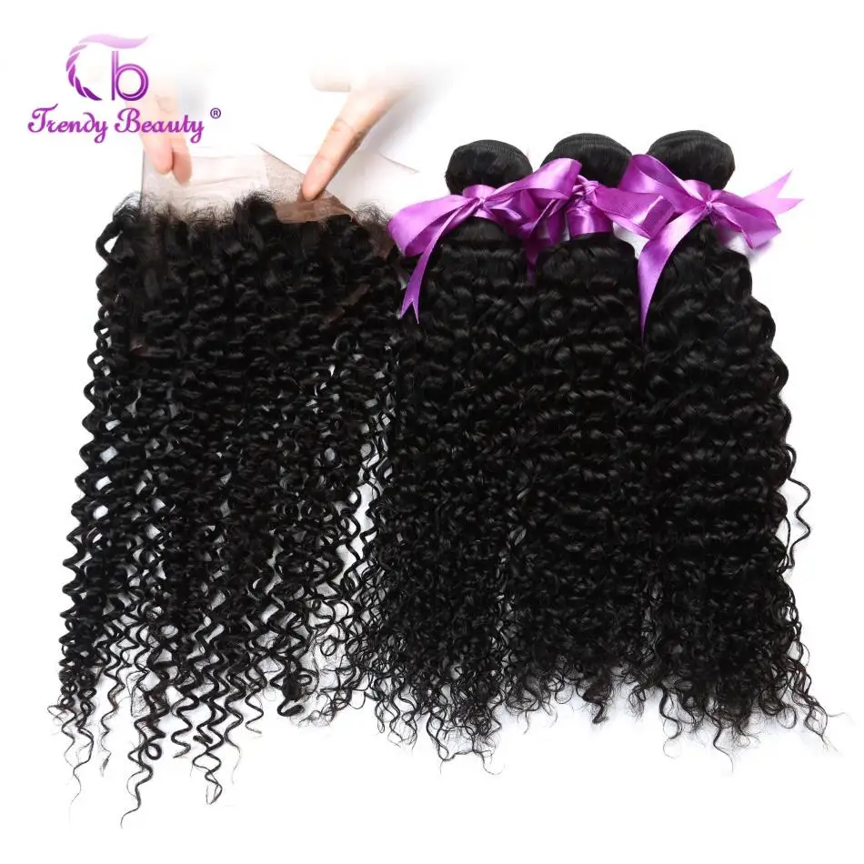 Бразильские кудрявые вьющиеся 34 пряди с закрытием кружева 100% пря...