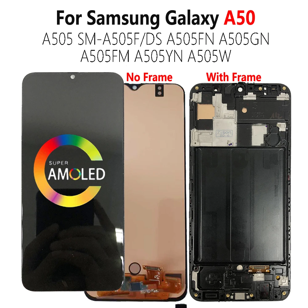 Super AMOLED A50 ЖК-дисплей для SAMSUNG Galaxy A505 A505F DS A505FN Дисплей Сенсорный датчик дигитайзер в сборе с модулем рамки