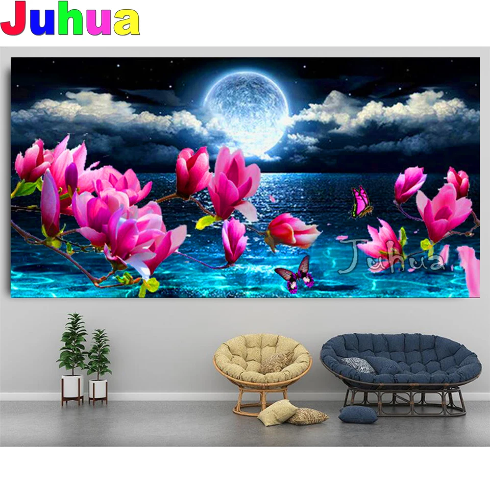 Магнолия фантазия морской пейзаж полный квадрат/круглая дрель 5d diy большой размер алмазная живопись; Пейзаж значок мозаика Алмазная вышивка набор