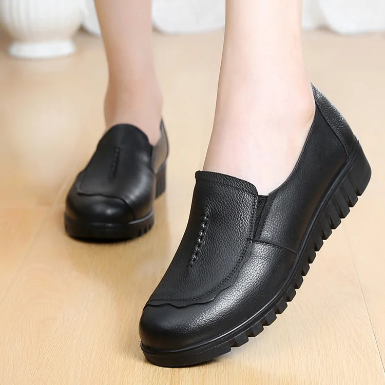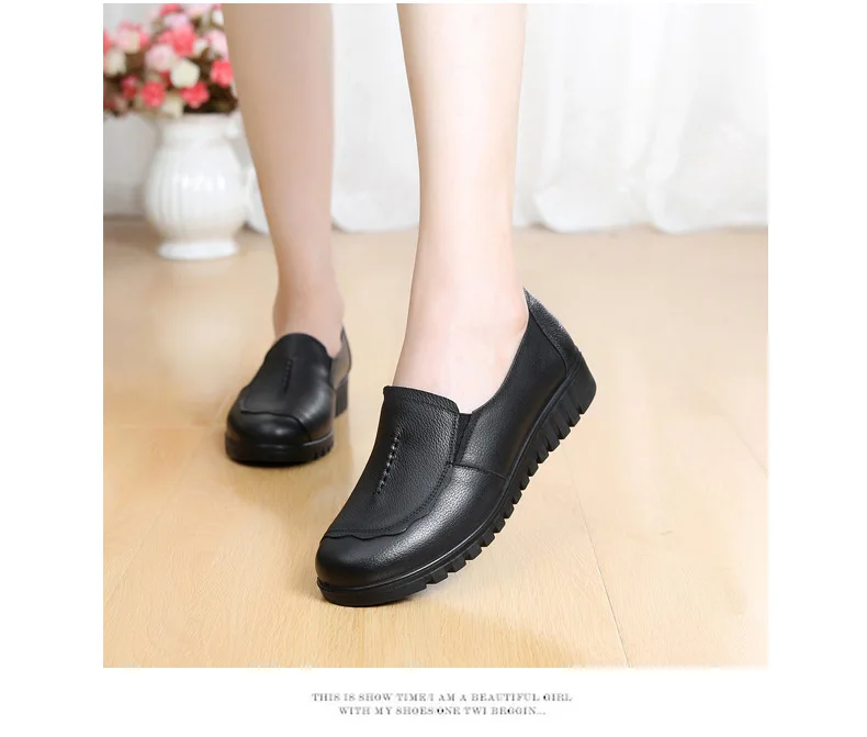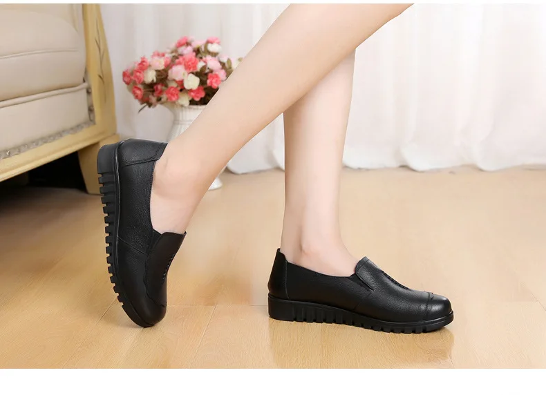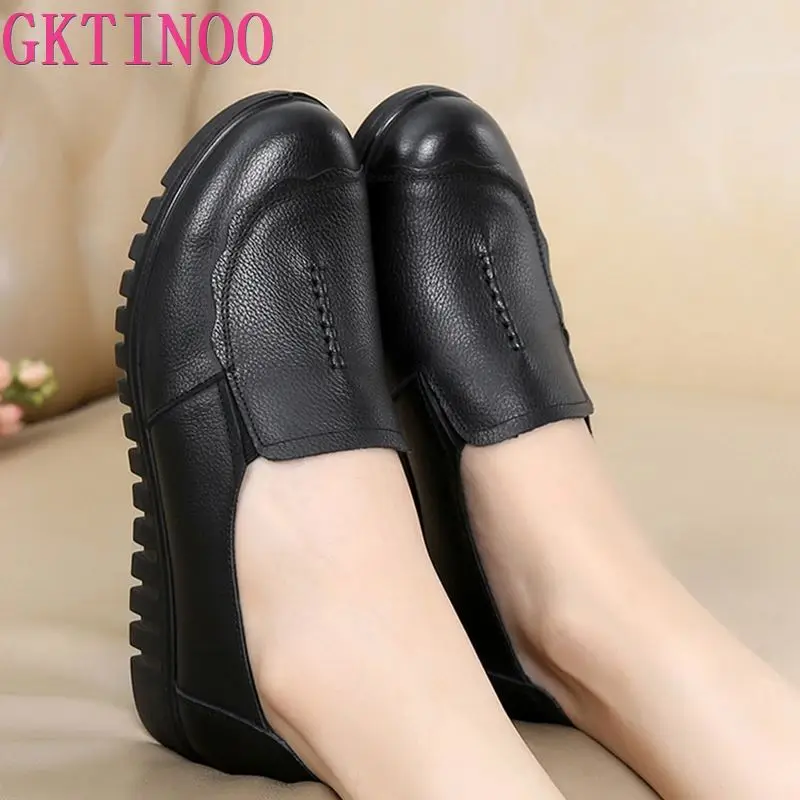 Туфли GKTINOO женские из натуральной кожи, Повседневная Удобная рабочая обувь на плоской подошве, без застежки, черные, на осень