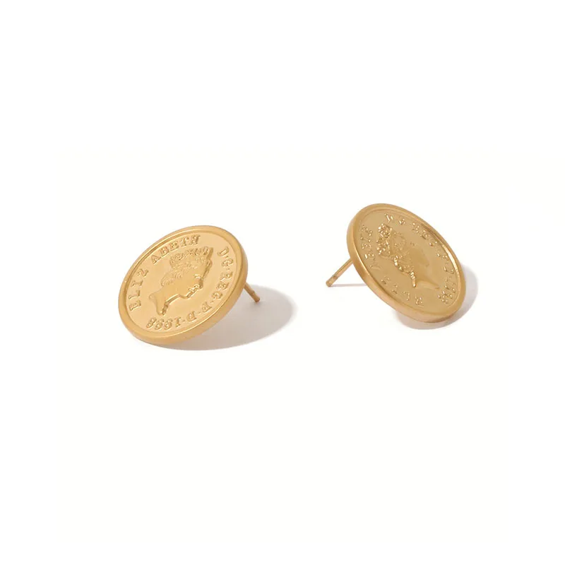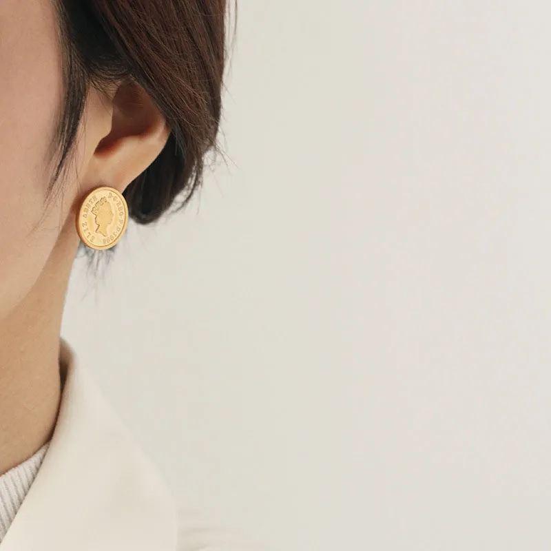 Европейская и американская королева монета с портретом круглая Ins Ретро дикая французская темпераментная титановая сталь женские серьги