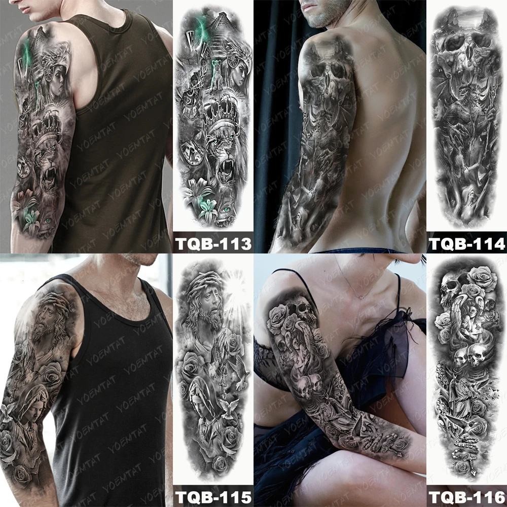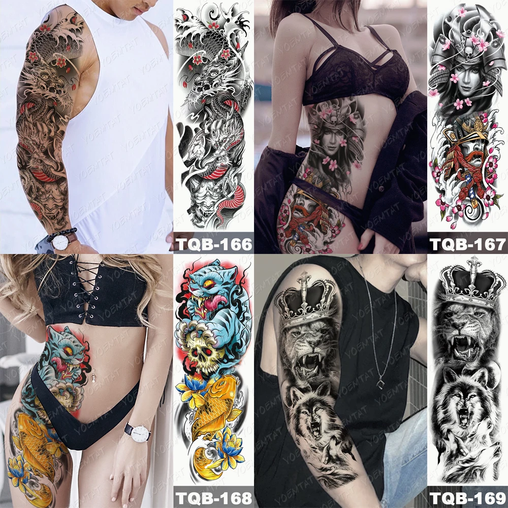 Водостойкие долговечные тату-наклейки на руку, с большим рукавом, Корона Льва, роза, дикий волк, тигр, боди-арт, искусственное тату для женщин