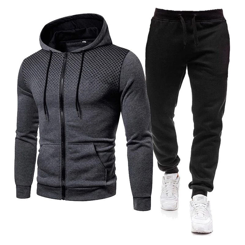 Спортивный костюм мужской из 2 предметов, толстовка с капюшоном и брюки, свитшот на молнии, комплект спортивной одежды, Осень-зима