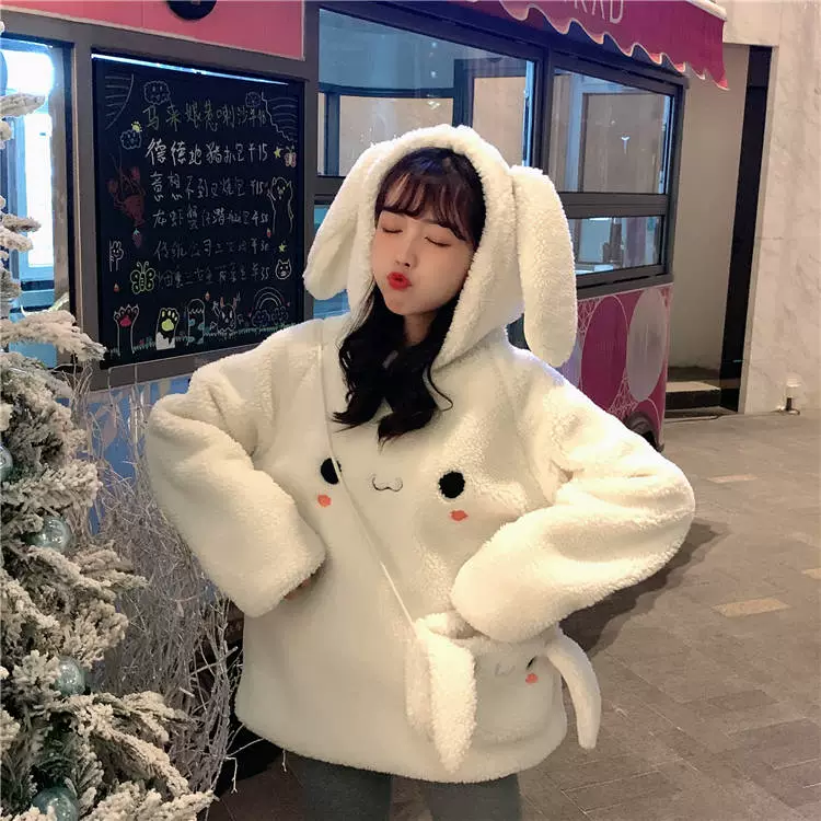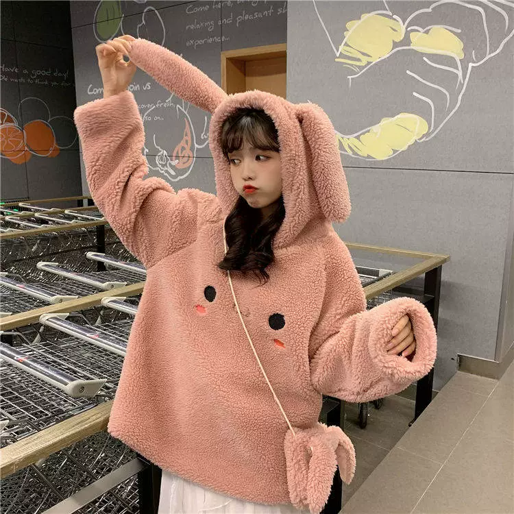 Свободные толстовки с заячьими ушками для женщин, теплые толстовки с длинными рукавами, милые женские толстовки с капюшоном с кроличьими ушками, Осень-зима 2020
