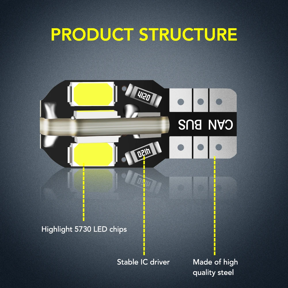 Светодиодные лампы W5W T10 Canbus 5730 8SMD 12 в 6000K 194 168, 10 шт.