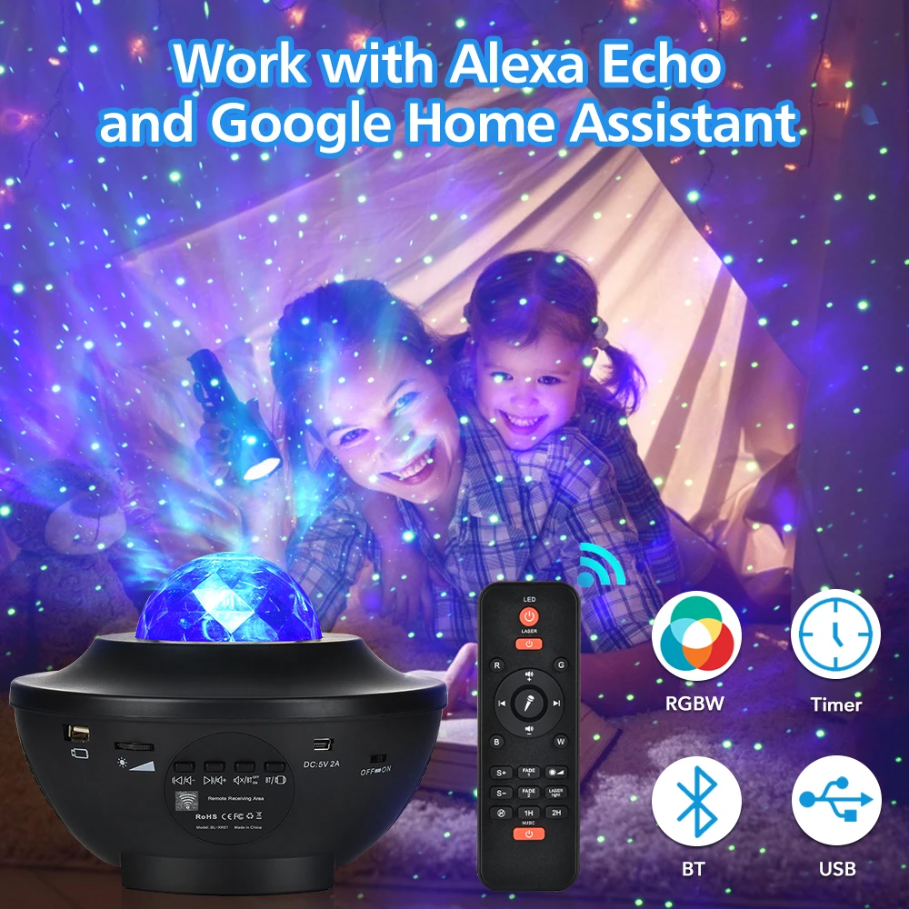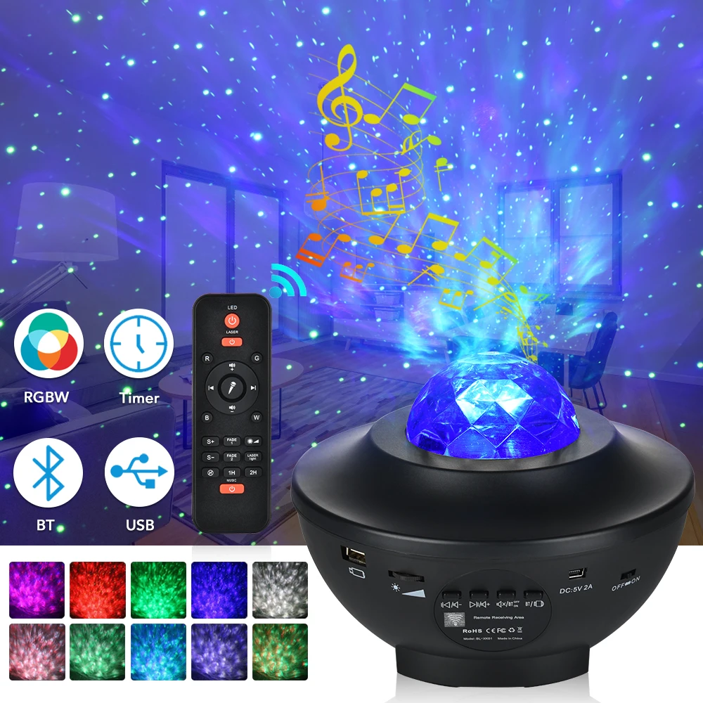 Светодиодный Галактический проектор, океанская волна, светодиодный ночник, музыкальный плеер, удаленная звезда, вращающийся ночник, светильник для детской спальни
