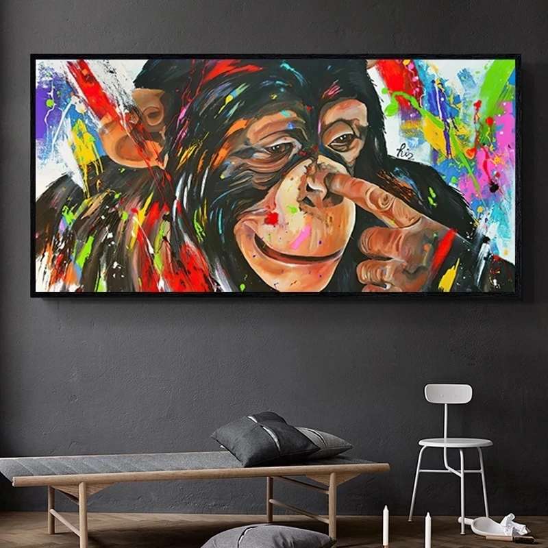 Картина на холсте с изображением животных в уличном стиле граффити забавные постеры и принты обезьяны настенные картины для гостиной настенное украшение