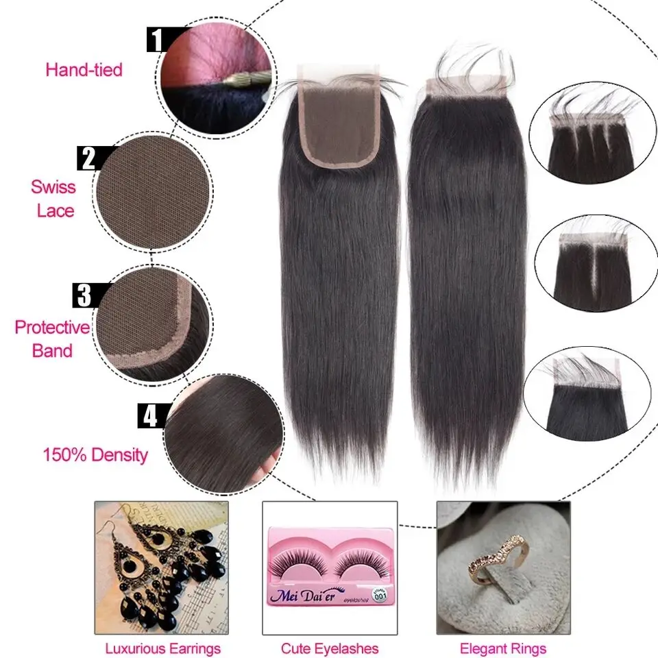 Hair Texture4*4 Lace Closure With Straight Bundles