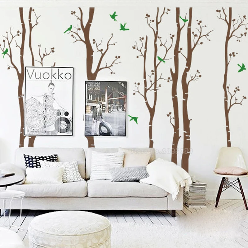 244 см высокое березное дерево с птицами, виниловая настенная накле...