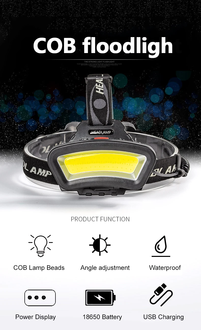 Мощный USB Перезаряжаемый налобный фонарь с аккумулятором 18650, водонепроницаемый COB светодиодный светильник, Предупреждение ющий светильник, передний светильник
