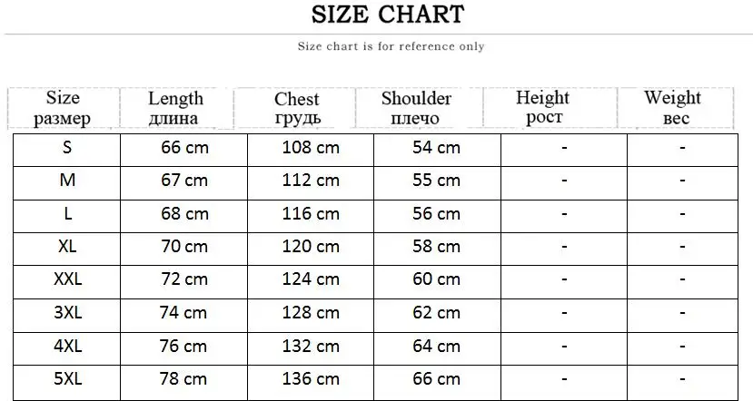 1. Это китайский размер, обычно на 2-3 размера меньше, чем Европейский/американский размер. Если вы носите Европейский/американский размер M, вы можете выбрать наш Размер XL или XXL.2. Как измеряется вручную; Погрешности могут составлять 1-3 см разницу допускается (1 см = 0,39 дюймов).3. Разные компьютеры могут отображать разные цвета, даже если они одного цвета. Пожалуйста, учитывайте разумную разницу в цвете.4. Как правило, мы можем отправить ваш заказ в течение 3 дней после оплаты, если нет, пожалуйста, свяжитесь с нами, чтобы проверить проблему.