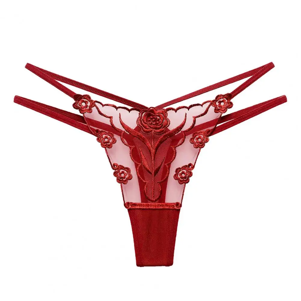 Нижнее белье, прозрачные стринги из тюля с цветочной вышивкой для медового месяца