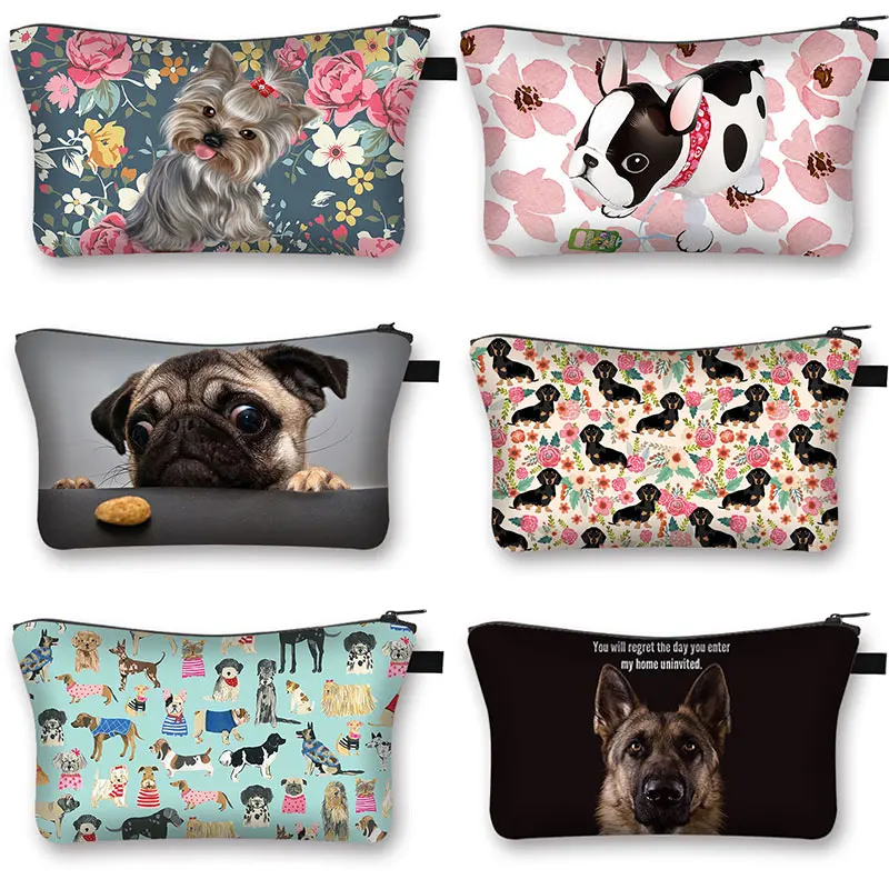 Сумка для косметики с 3D рисунком немецкой овчарки Бостонского терьера, милая собачка, чехол для косметики с таксой