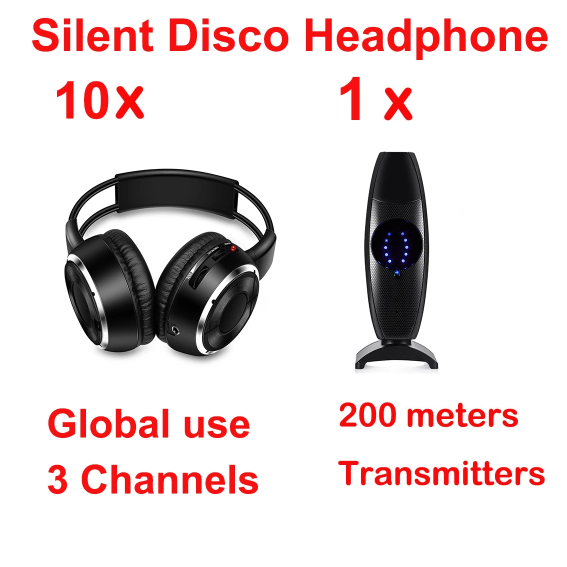 Профессиональные бесшумные дискотечные наушники, 10 шт., с 1 передатчиком-RF, беспроводные, для iPod, MP3, диджеев