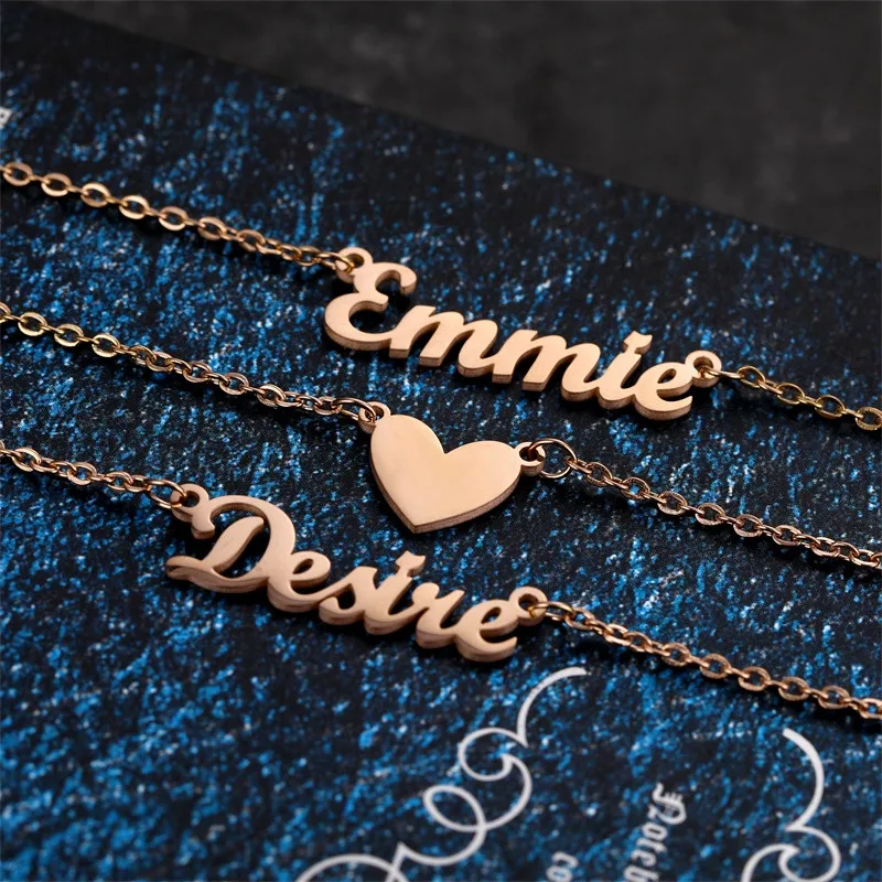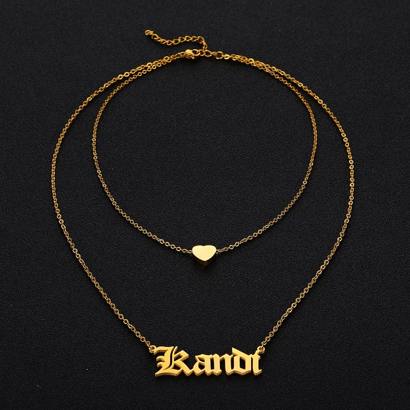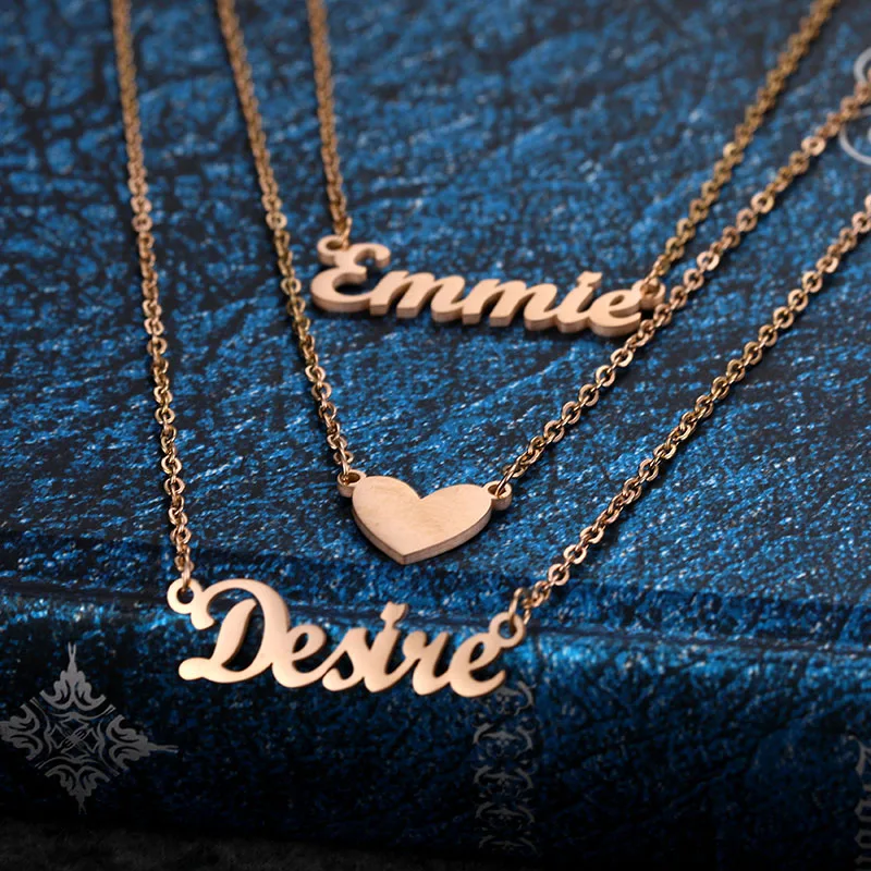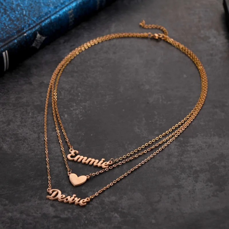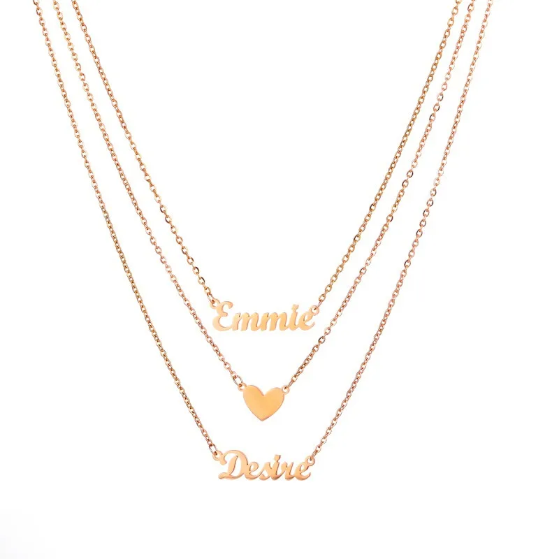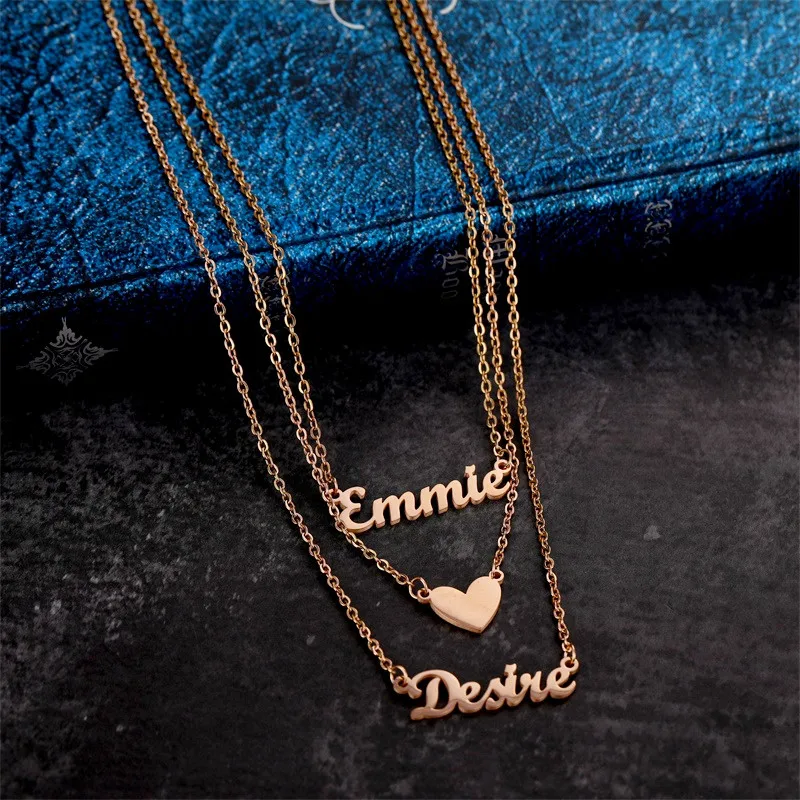 Ожерелье с именем на заказ, многослойное ожерелье из нержавеющей стали для женщин, Классическая именная бирка в форме сердца