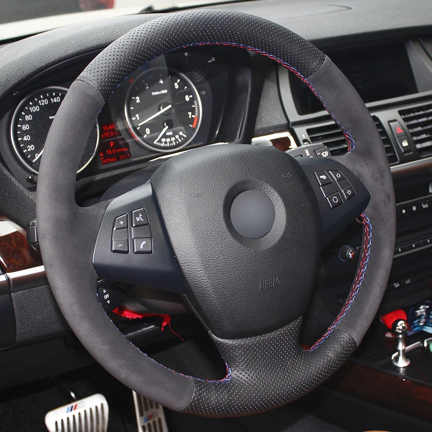 Мужская прошитая вручную обувь черного цвета из натуральной кожи и замши чехол рулевого колеса автомобиля для BMW X5 E70 2006 2007 2008 2009 2010 2011 2012 2013