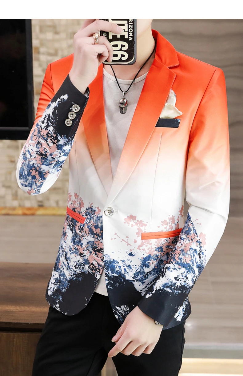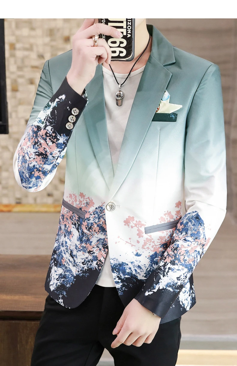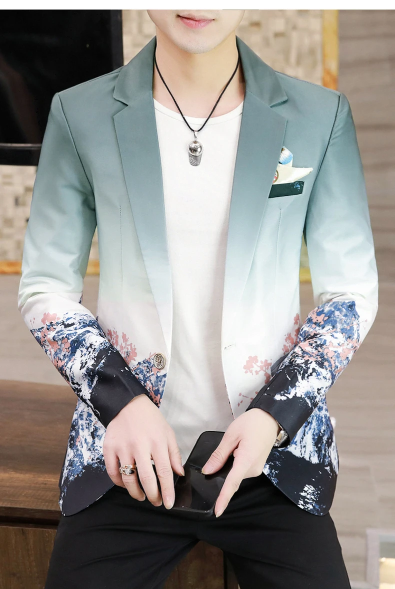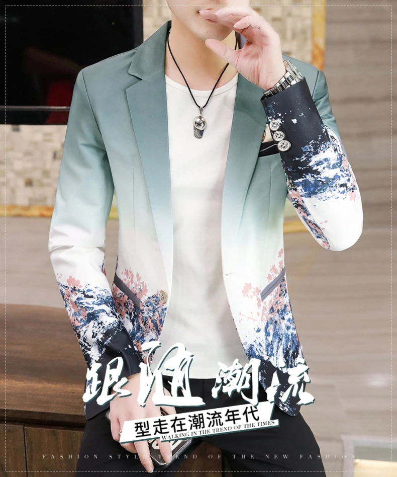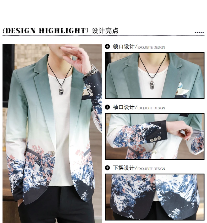 DYB Зак весна-осень мужской индивидуальный Печатный костюм Корейская версия маленький костюм модная прическа Молодежная Повседневная облегающая куртка