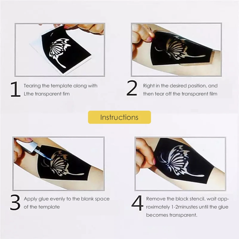 Набор для татуировок, трафареты, кисть для пудры, клей, Временные т...