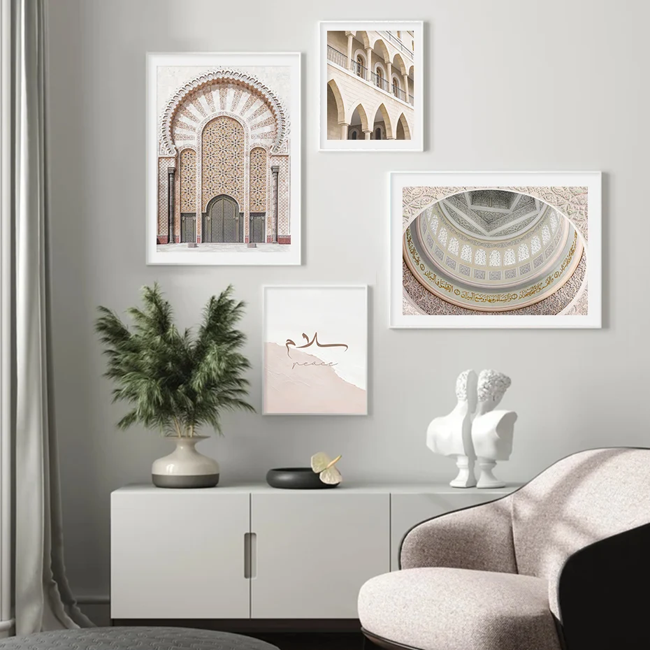 Исламская каллиграфия розово-белая Марокканская дверь плакат Холст Картина Настенная Художественная печать картины Интерьер Гостиной домашний декор
