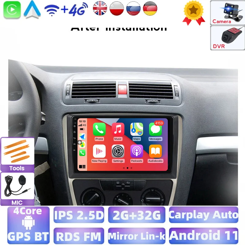 Автомобильный радиоприемник, мультимедийный плеер для SKODA Octavia 2 A5 2008-2013, Android, видеонаблюдение, GPS, 2Din, поддержка управления рулевым колесом