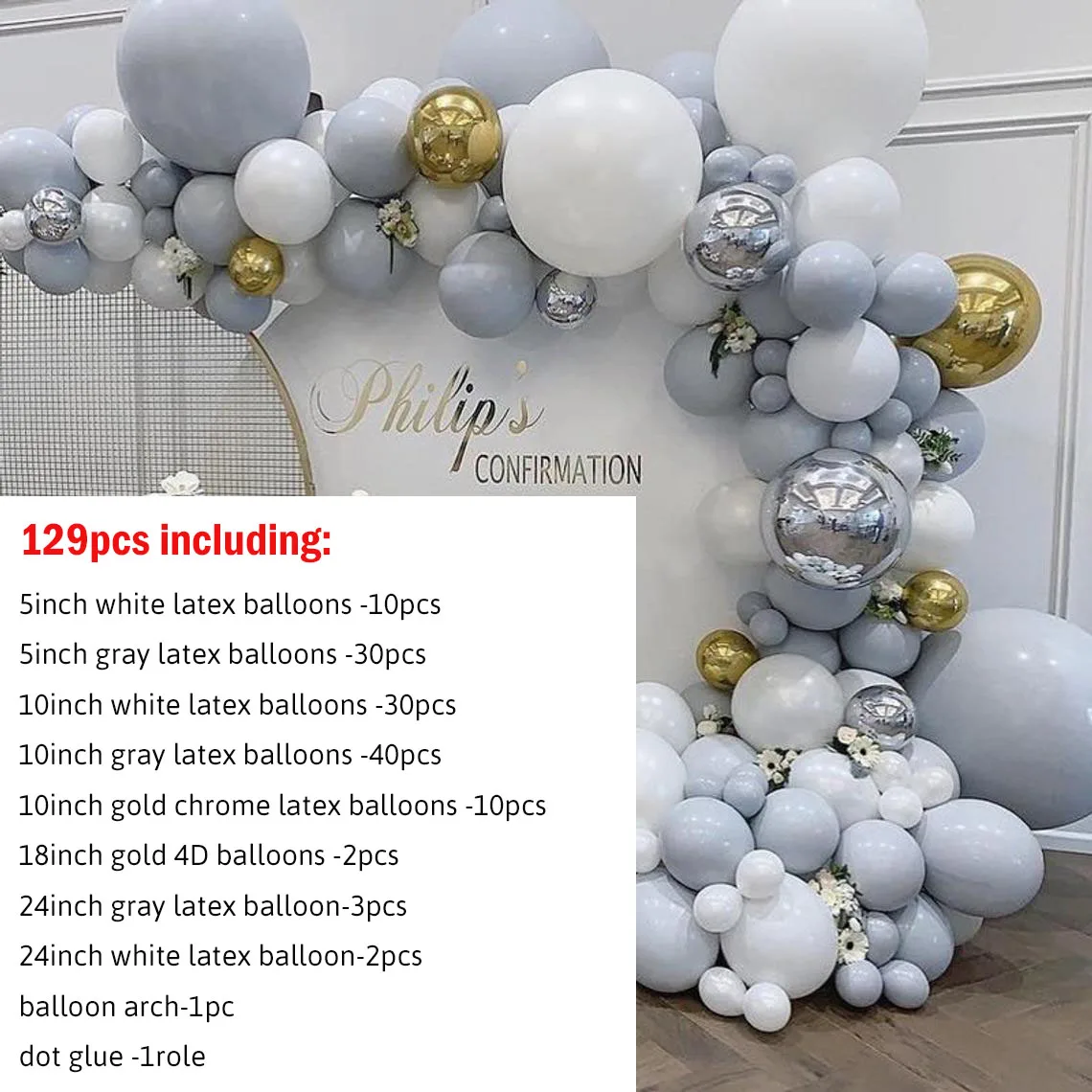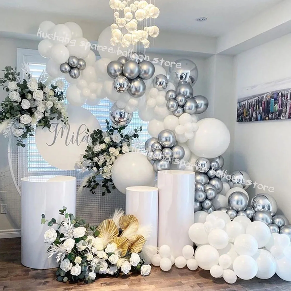 125 шт., свадебные шары для украшения, комплект гирлянды, серебристые, белые, хромированные шарики 4D, фон для детской вечеривечерние