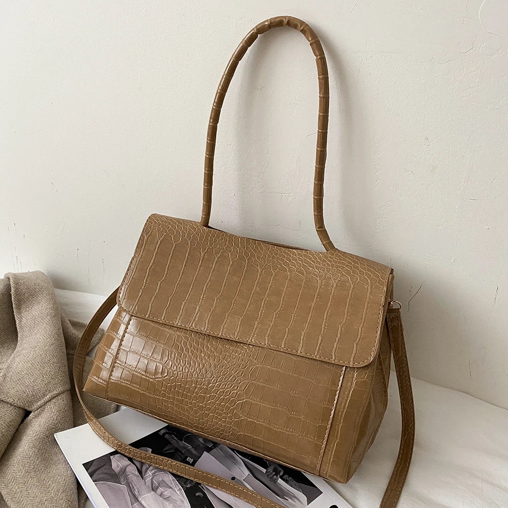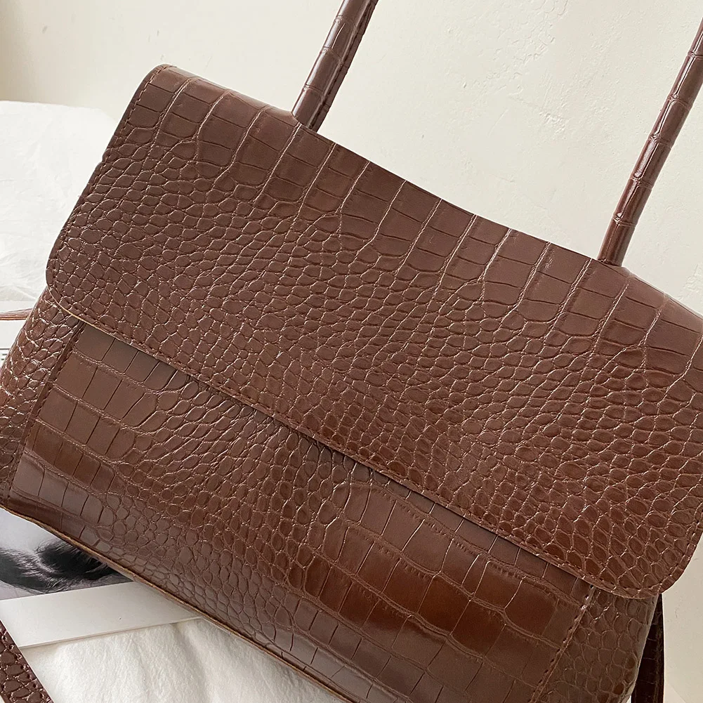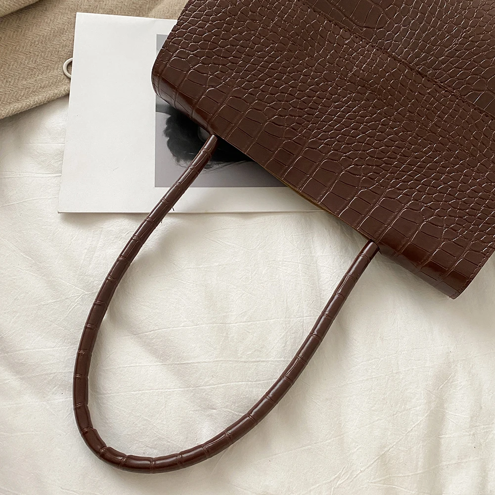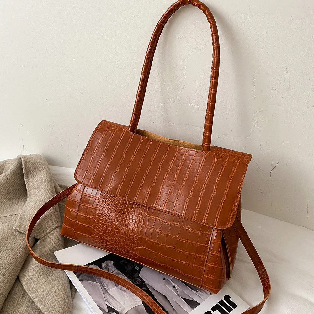 Повседневная вместительная сумка через плечо из кожи аллигатора, Женская однотонная сумка через плечо из искусственной кожи
