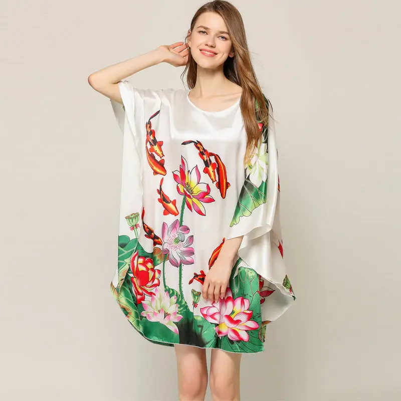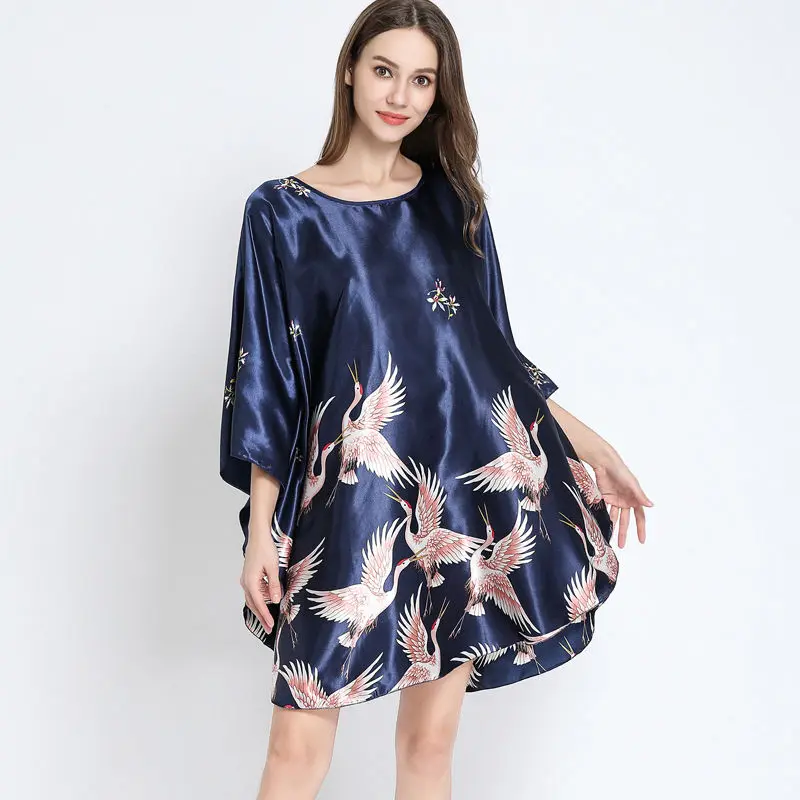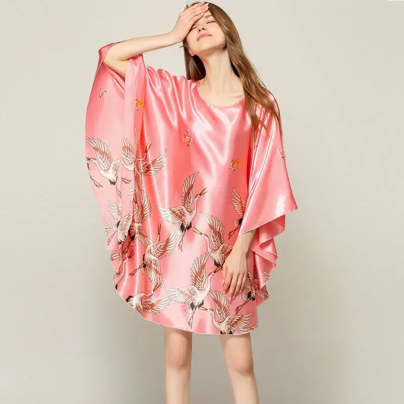Женская ночная рубашка размера плюс 5XL 6XL, спальное платье, винтажная шелковая ночная рубашка с журавлем, женское нижнее белье, одежда для сна, женский свободный топ для сна