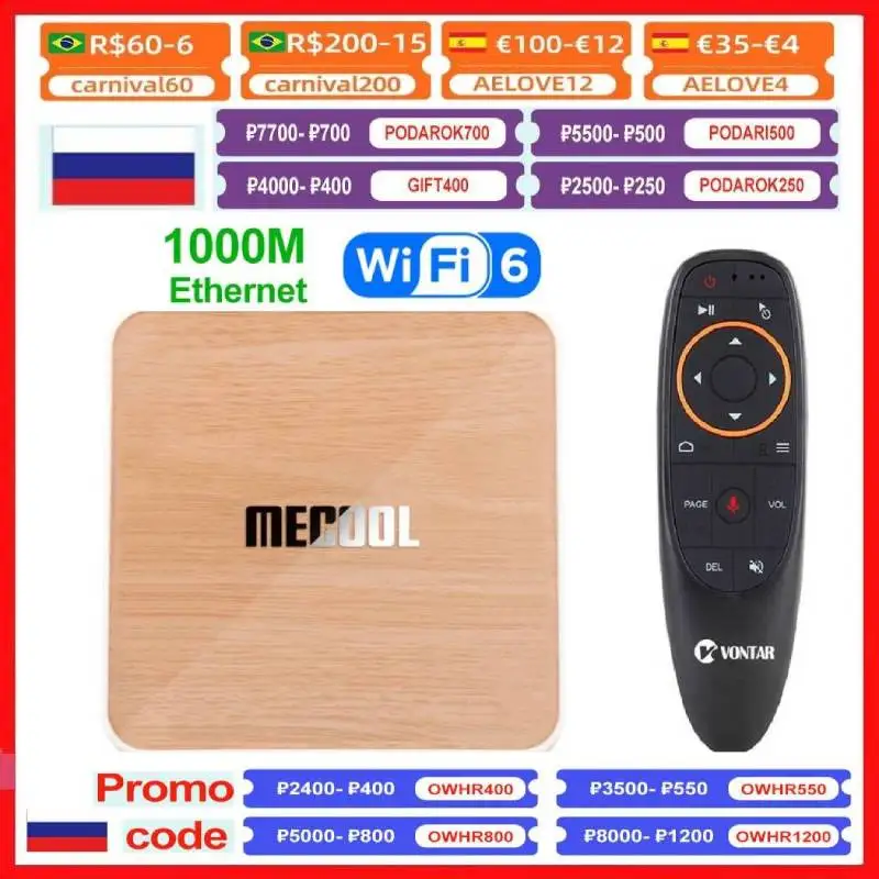 Приставка Смарт-ТВ Mecool KM6 Deluxe, Android 10, Amlogic S905X4, Android 10,0, 4 + 64 ГБ, 2,4 дюйма