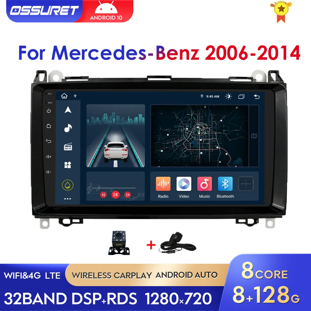 2 Din IPS DSP Android10 Автомобильный GPS стереоплеер для Mercedes Benz B200 класса A W169 W245 Viano Vito W639 Sprinter W906 RDS BT Wifi