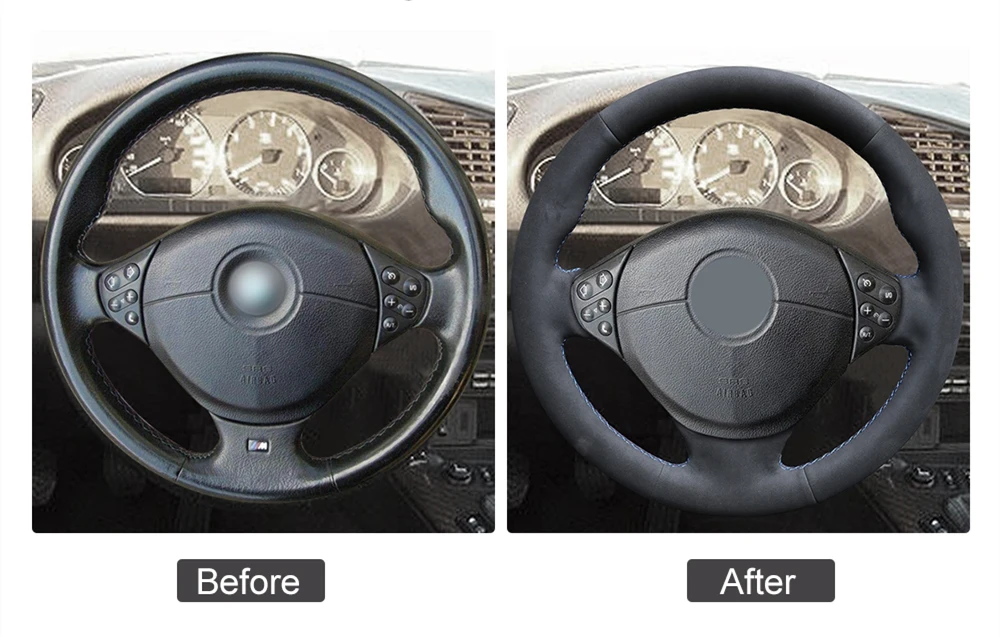 Сшитая вручную черная замша чехол рулевого колеса автомобиля для BMW M Sport E36 1996-2000 E39 1995-2001 Z3 M E367 E368