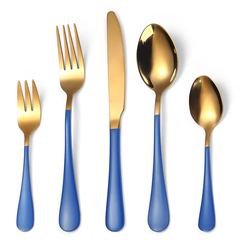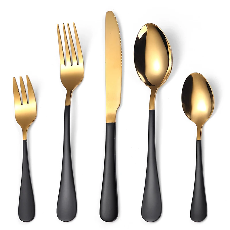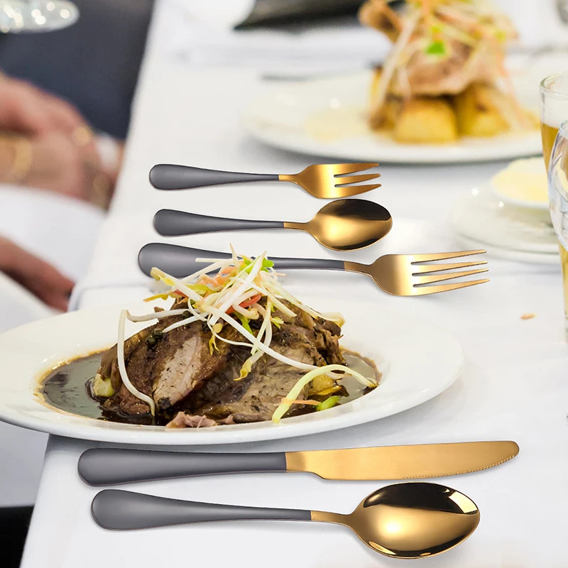 Набор позолоченной столовой посуды из 24 предметов, вилка, ложка, н...