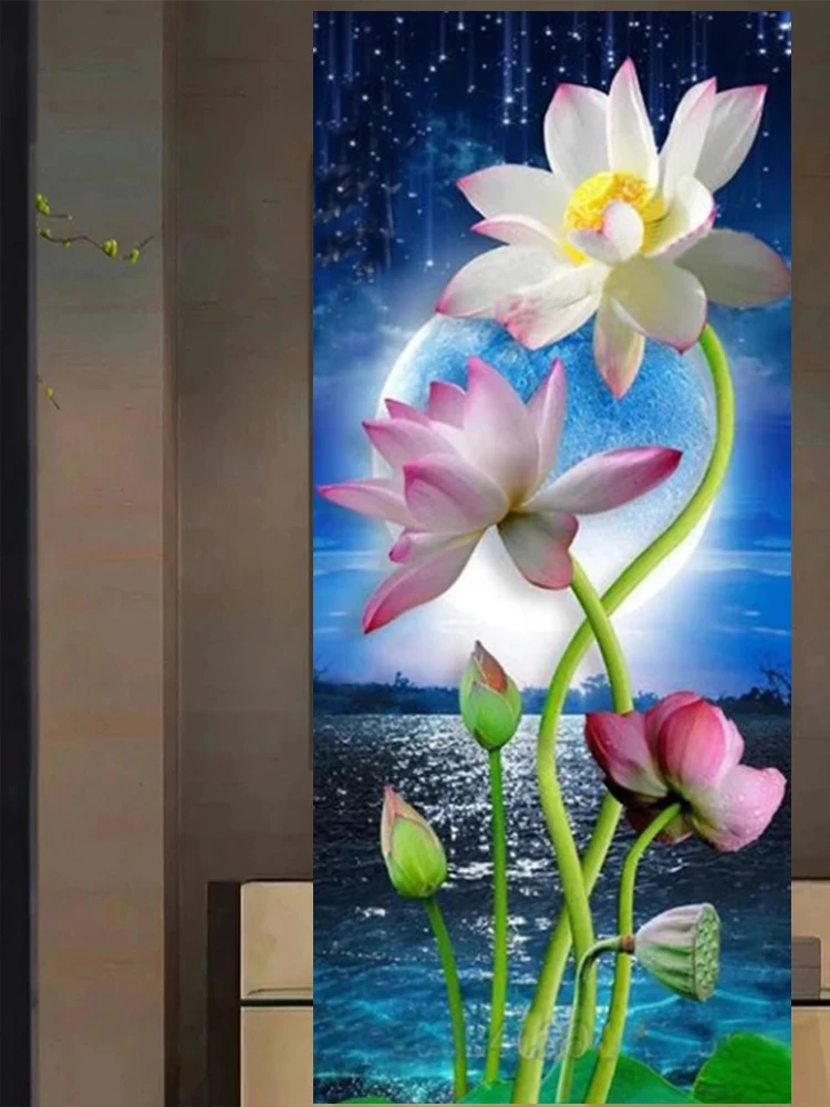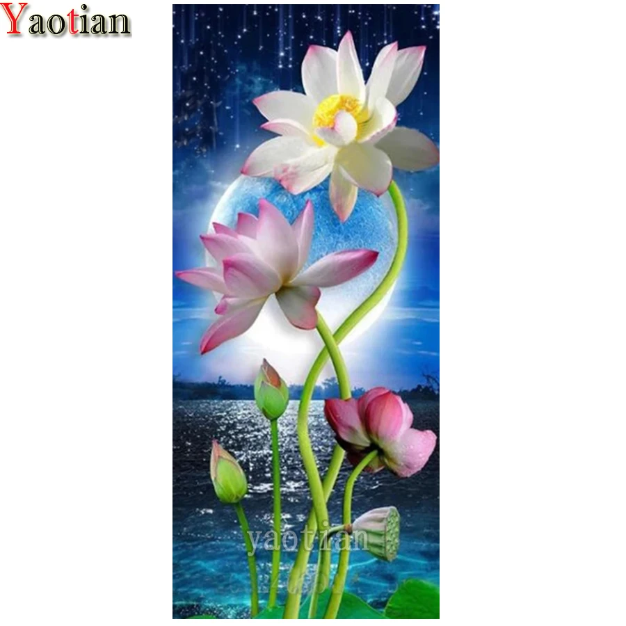 Красивый Лотос лунный бриллиант вышивка 5D алмазов картина полный дрель квадратный озеро цветок Алмазная мозаика, алмазная Вышивка крестом ручной работы