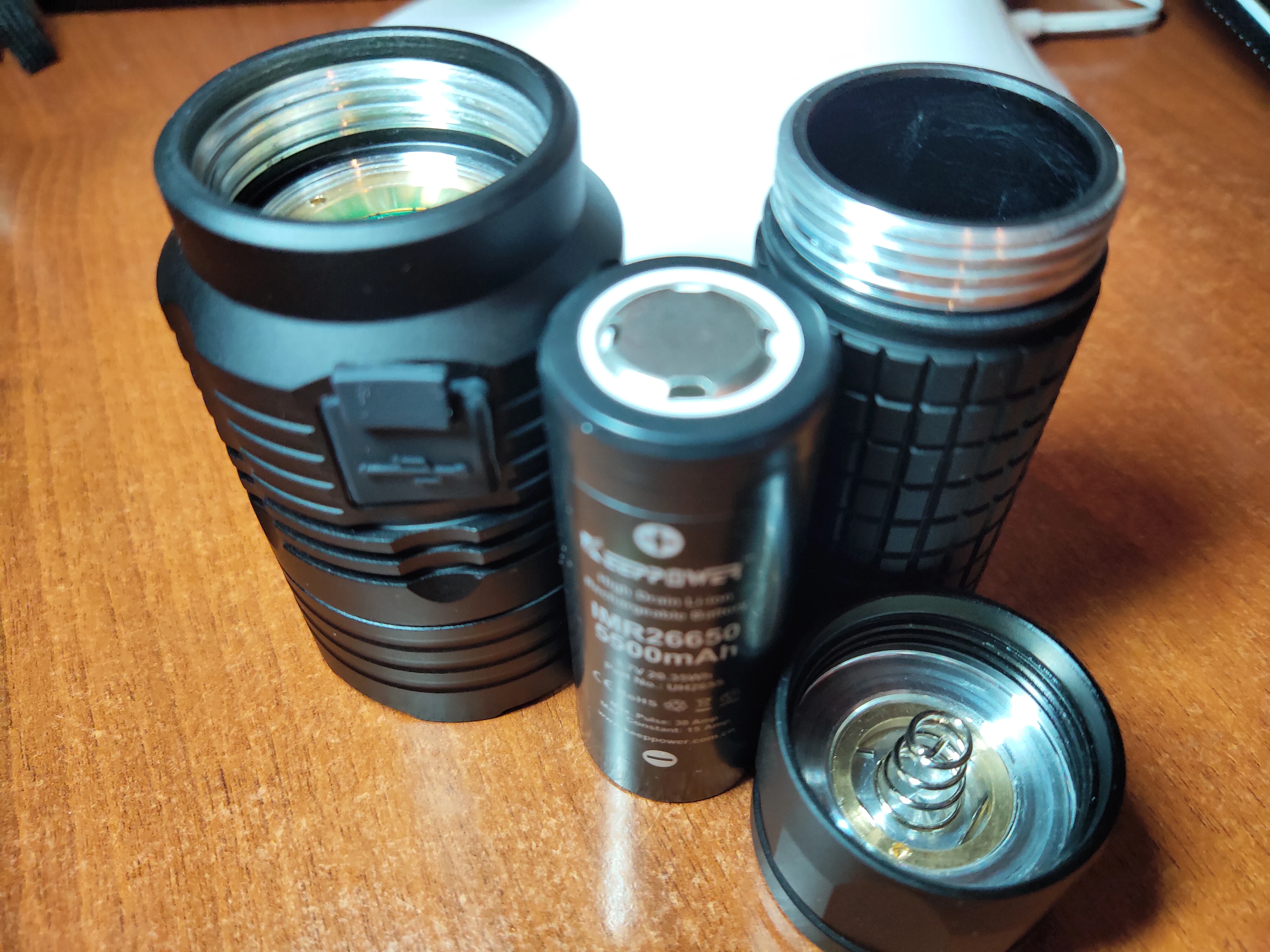 Саймон молодец, как всегда! Положил в заказ чехол в подарок, он отличного качества. Фонарь отличный, всё что заявлено присутствует. Но, как всегда есть НО. Фонарь сделан под батарею 21700, почему они кладут в комплекте 21650, непонятно. Этих 5мм не хватает и батарея внутри болтается и отходит от контактов. Вдогонку на стороне головы нет пружины, хотя она была обещана, пружина на хвосте тонкая, маленькая и без шунта. Ещё и диаметр батареи маловат на 1.5мм, и она болтается ещё и поперёк. Затычка зарядного гнезда имеет хлястик, который задевает за все, и открывает это гнездо когда не нужно. Его нужно отрезать. Смазки на резьбе нет , см фото.
