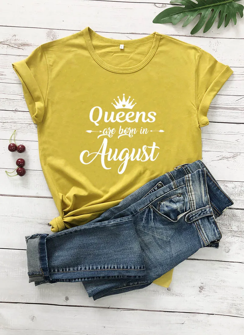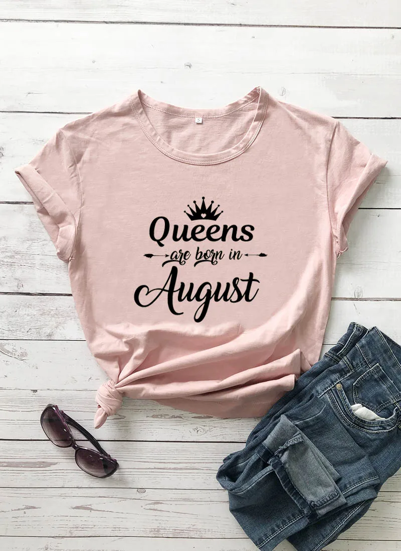 Queens рождаются в августе Женская летняя обувь забавная Повседневная футболка, Т-100% хлопковая Футболка Рубашки для дня рождения, подарок на день рождения, каждый является королева P307