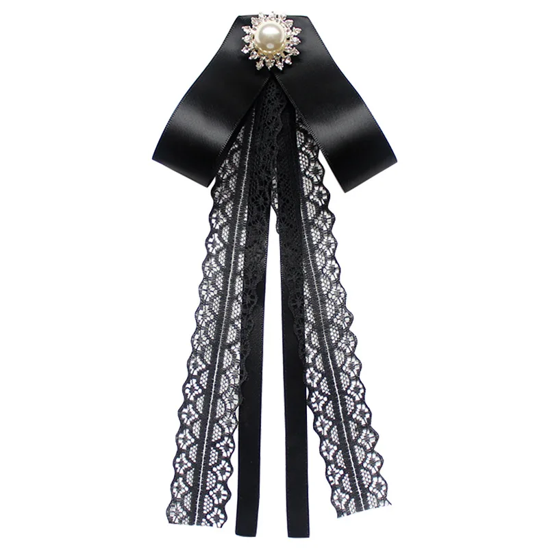Модный ленточный Кружевной Галстук-бабочка ручной работы для женщин Блузки Рубашки Броши на воротник заколка женский галстук-бабочка с жемчугом аксессуары для одежды