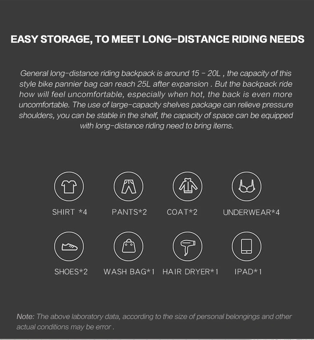 Велосипедный рюкзак, полностью водонепроницаемый, эконом 25 л, Сумка с односторонней рамой для поездок на большие расстояния, сумка на седло для велосипеда, корзина для хранения
