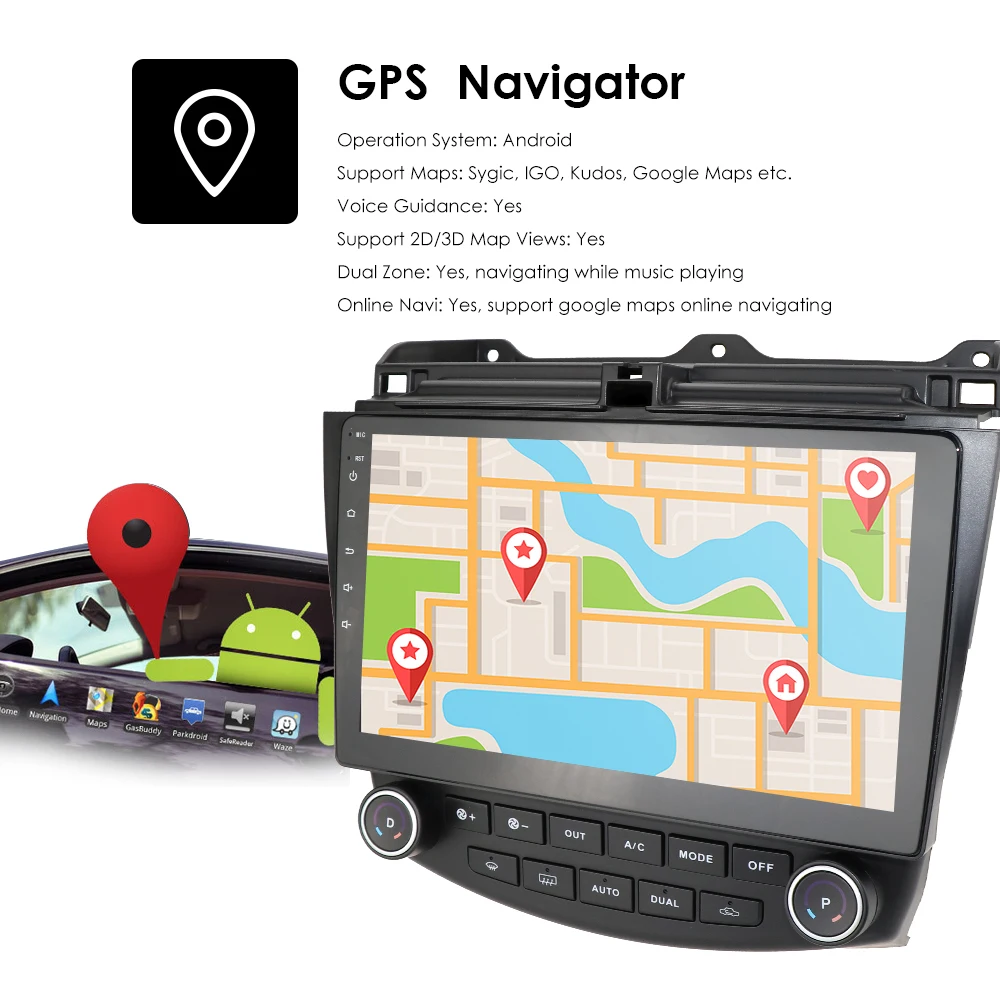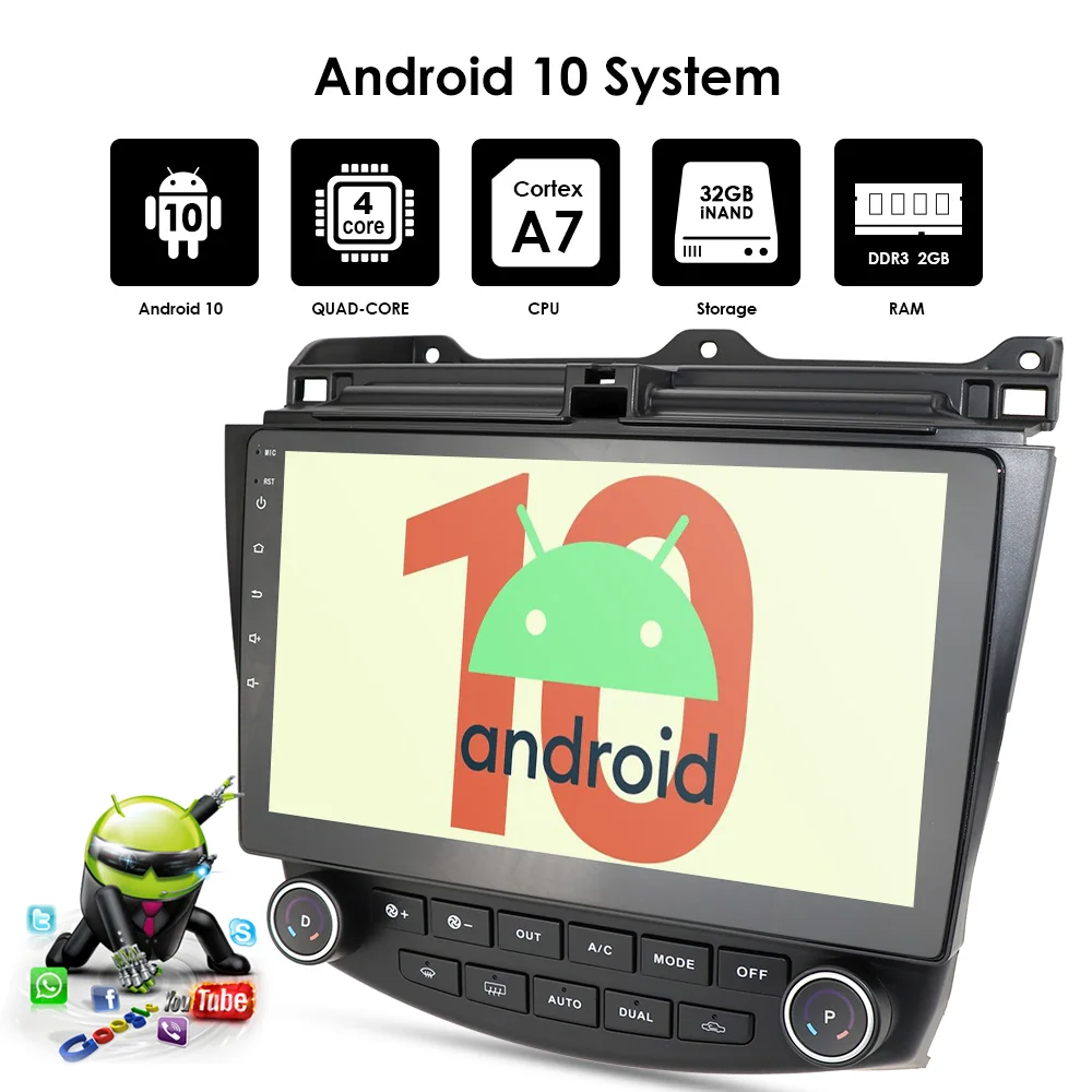 Мультимедийная магнитола для Honda ACCORD 7 2003 2004 2005 2006 2007 Carplay с голосовым ИИ Android стереозвуком, 10-дюймовым экраном, GPS-Навигатором