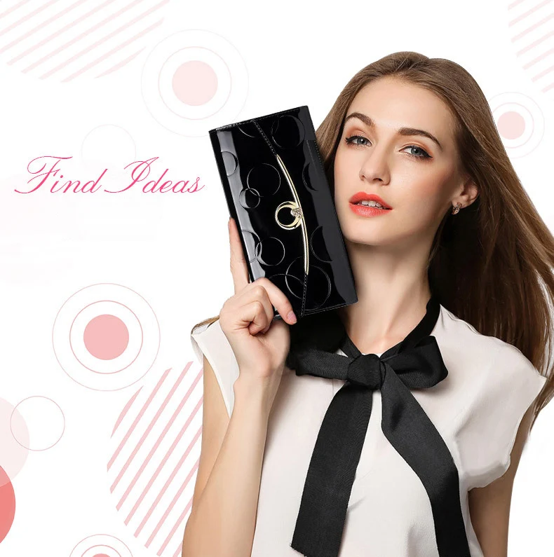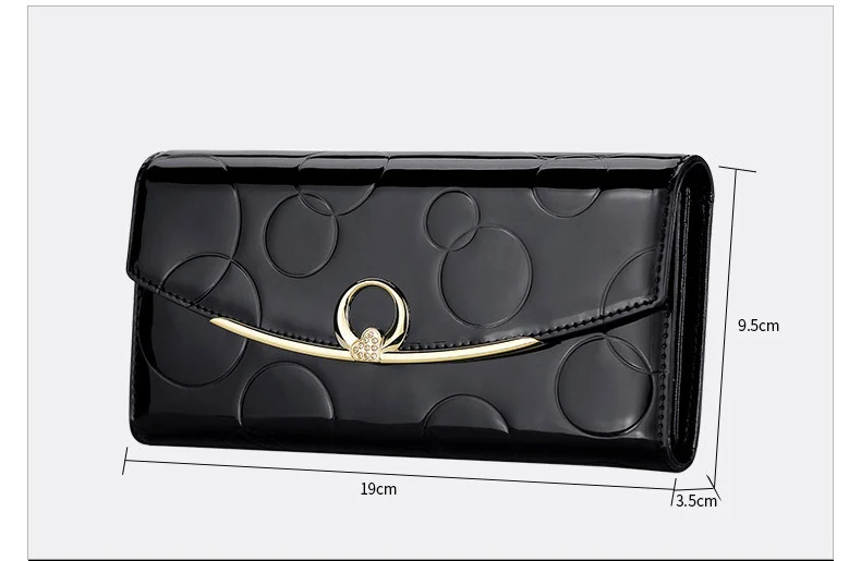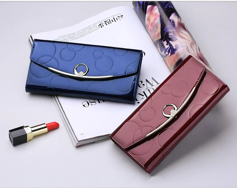 Кошелек женский из натуральной кожи со стразами, Роскошный дизайнерский клатч из лакированной кожи, модный удлиненный бумажник на защелке в 3 сложения