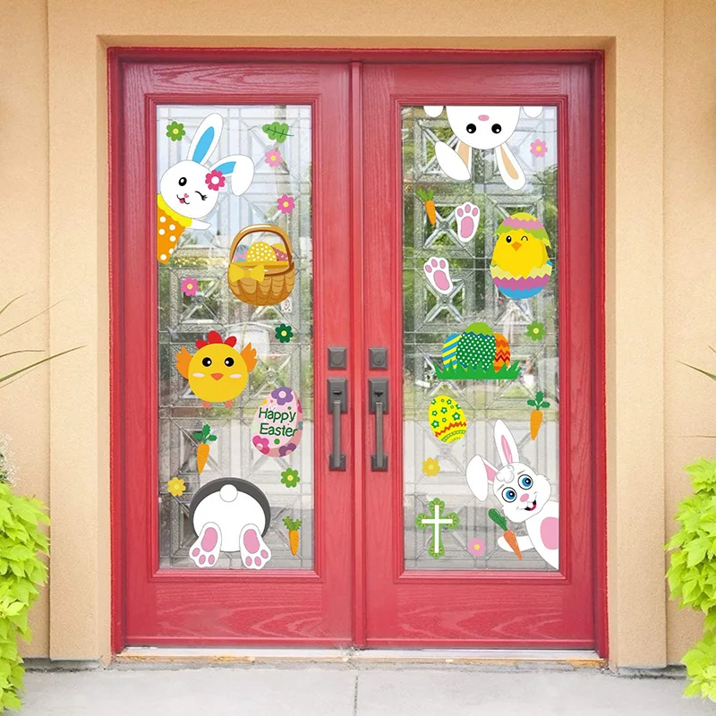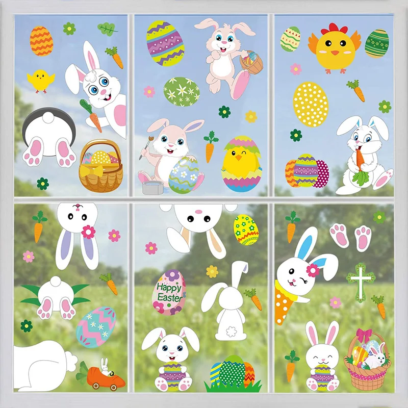 Пасхальные украшения для дома, кролик, красочные кроличьи яйца, наклейки на стену, электростатическое окно плакатов, пасхальный декор для дома