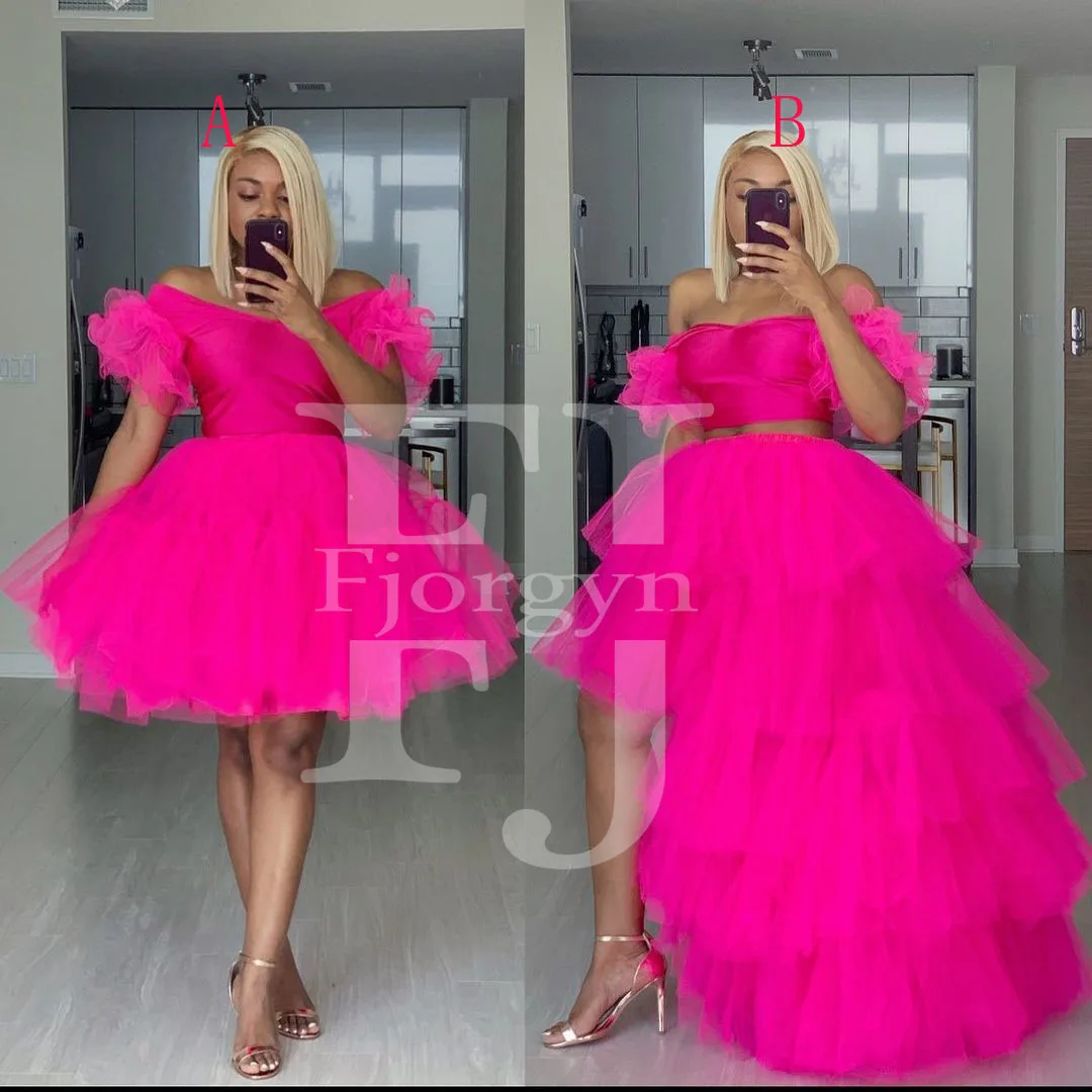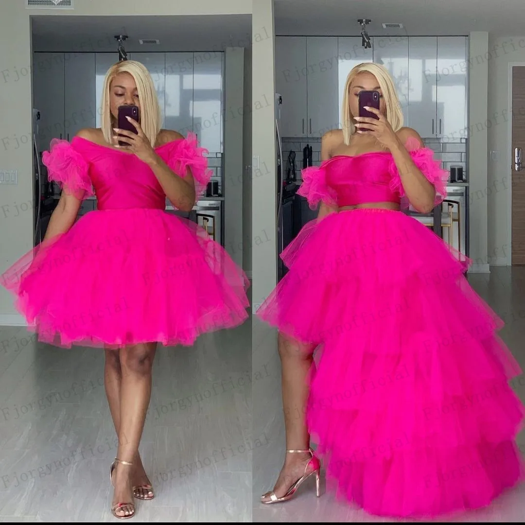 2021 г., в стиле Instagram, фуксия, с открытыми плечами, Короткое бальное платье, вечернее платье, Формальные вечерние платья, модное женское платье в двух стилях