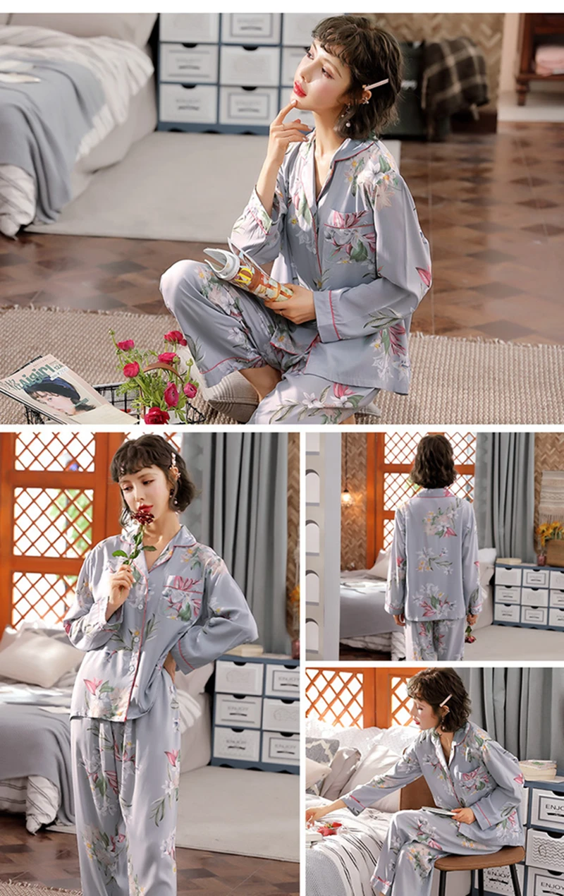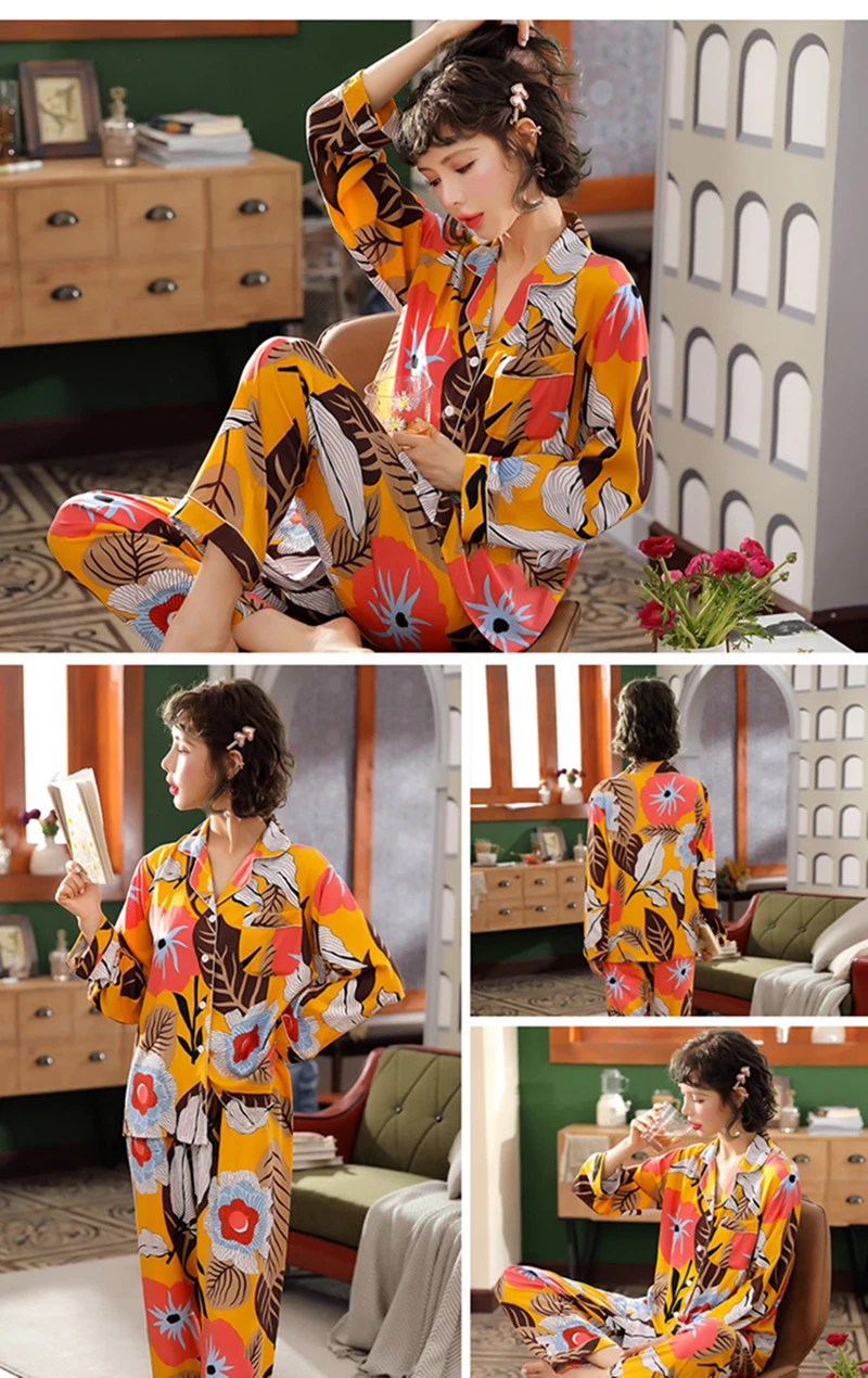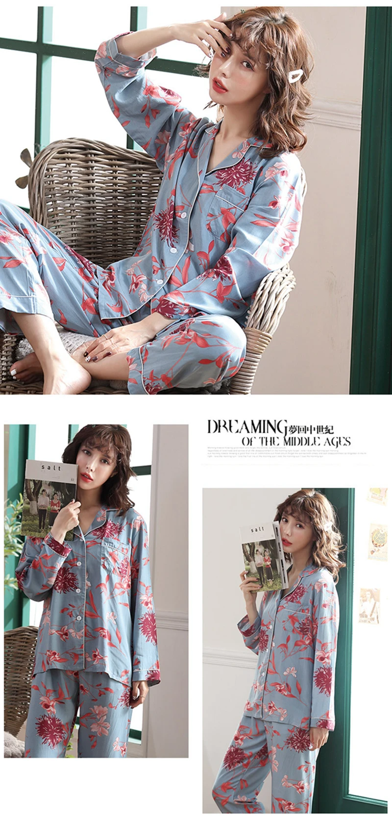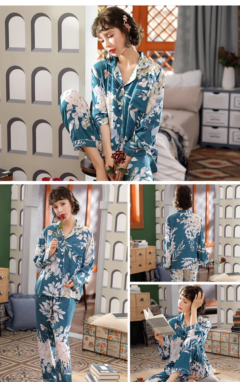 Женские пижамные комплекты из 100% хлопка, осенняя модная женская о...