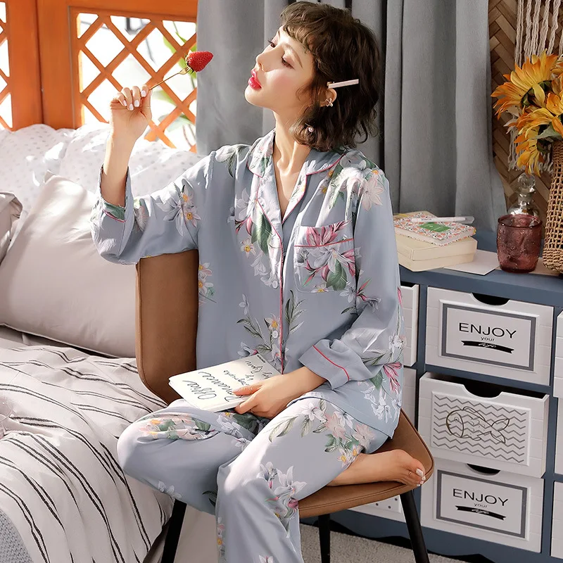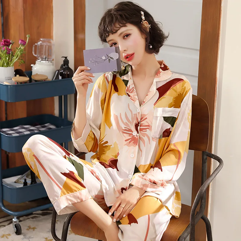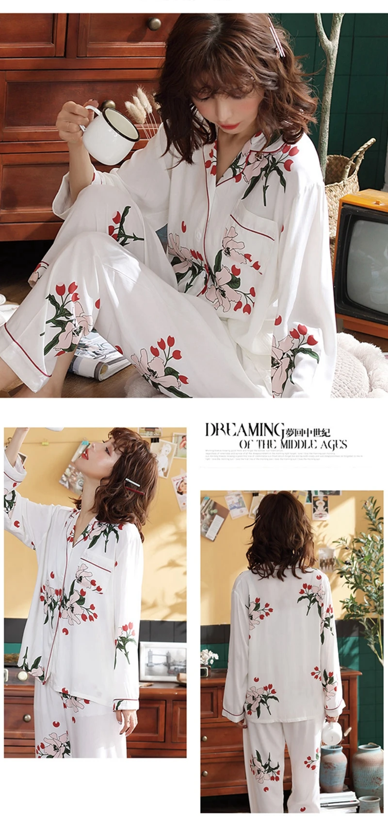 Пижама JULY'S SONG женская из вискозы, повседневный пижамный комплект с отложным воротником, одежда для сна с длинным рукавом, домашняя одежда с принтом, на лето