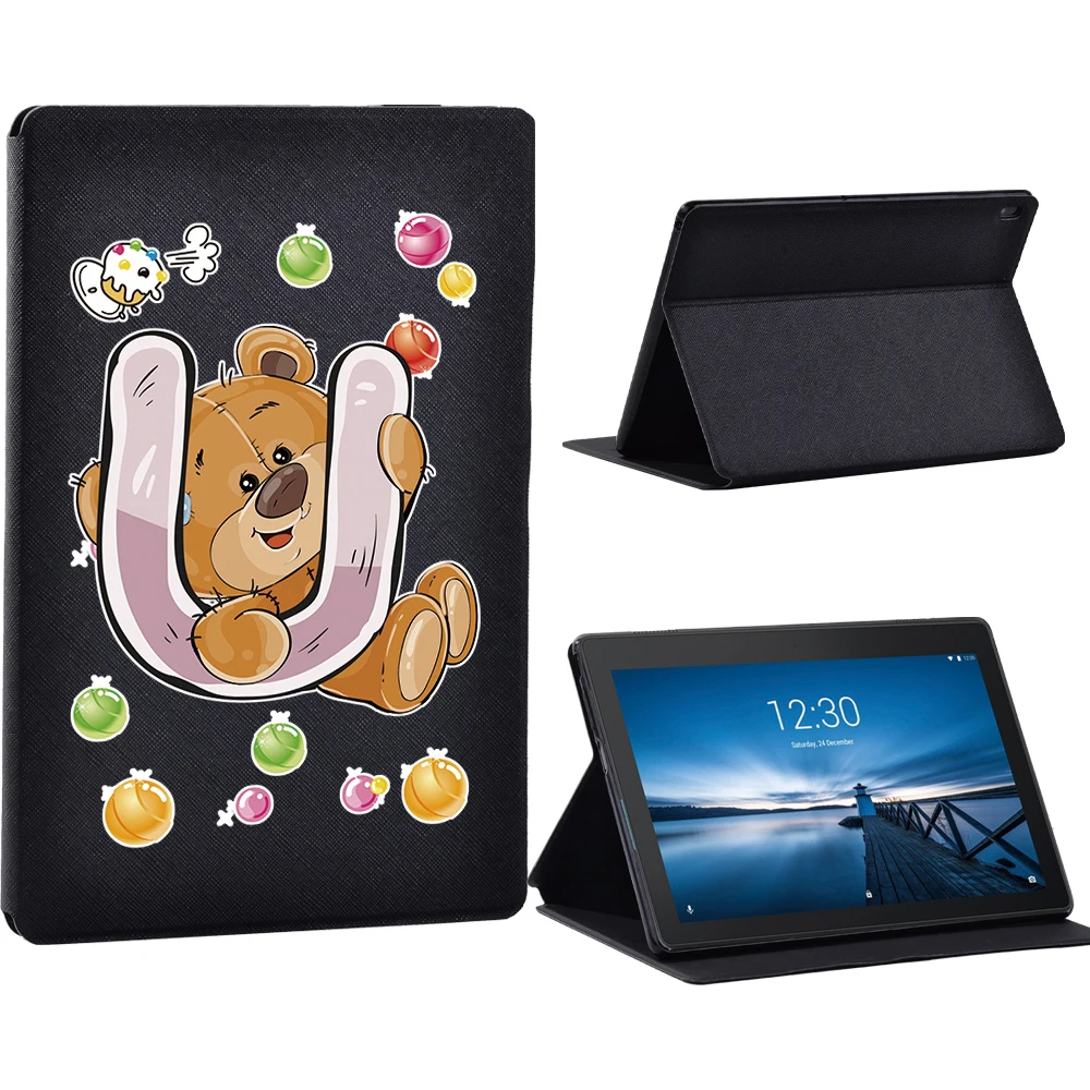 Чехол для планшета Lenovo Tab E10 10,1 дюймаM10 10,1 дюйма, кожаный чехол-подставка для Lenovo Tab M10 FHD Plus TB-X606F, чехол с рисунком медведя и букв