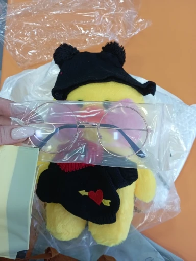 Спасибо. Пришло в Уфу быстро за 3 недели. Игрушка как в описании, примерно 25 см. Только она жёсткая и плотная такая, я думала будет более мягкой. Упаковано хорошо. Очки целые, все хорошо. Спасибо. Надевать не стала, пусть это сделает мой ребёнок, потом дополним фото