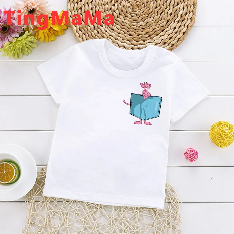 Футболка для мальчиков и детей, с рисунком из мультфильма Розовая пантера