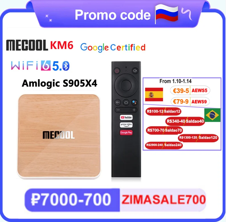 ТВ-приставка Mecool KM6, 4 + 64 ГБ, Android 10,0, Amlogic S905X4, голосовое управление, 1000 м, Bluetooth, 5.0
