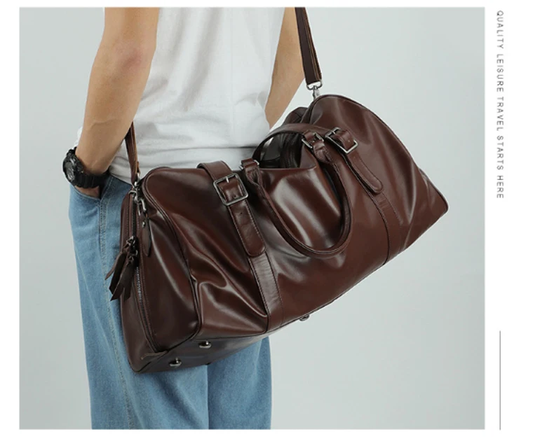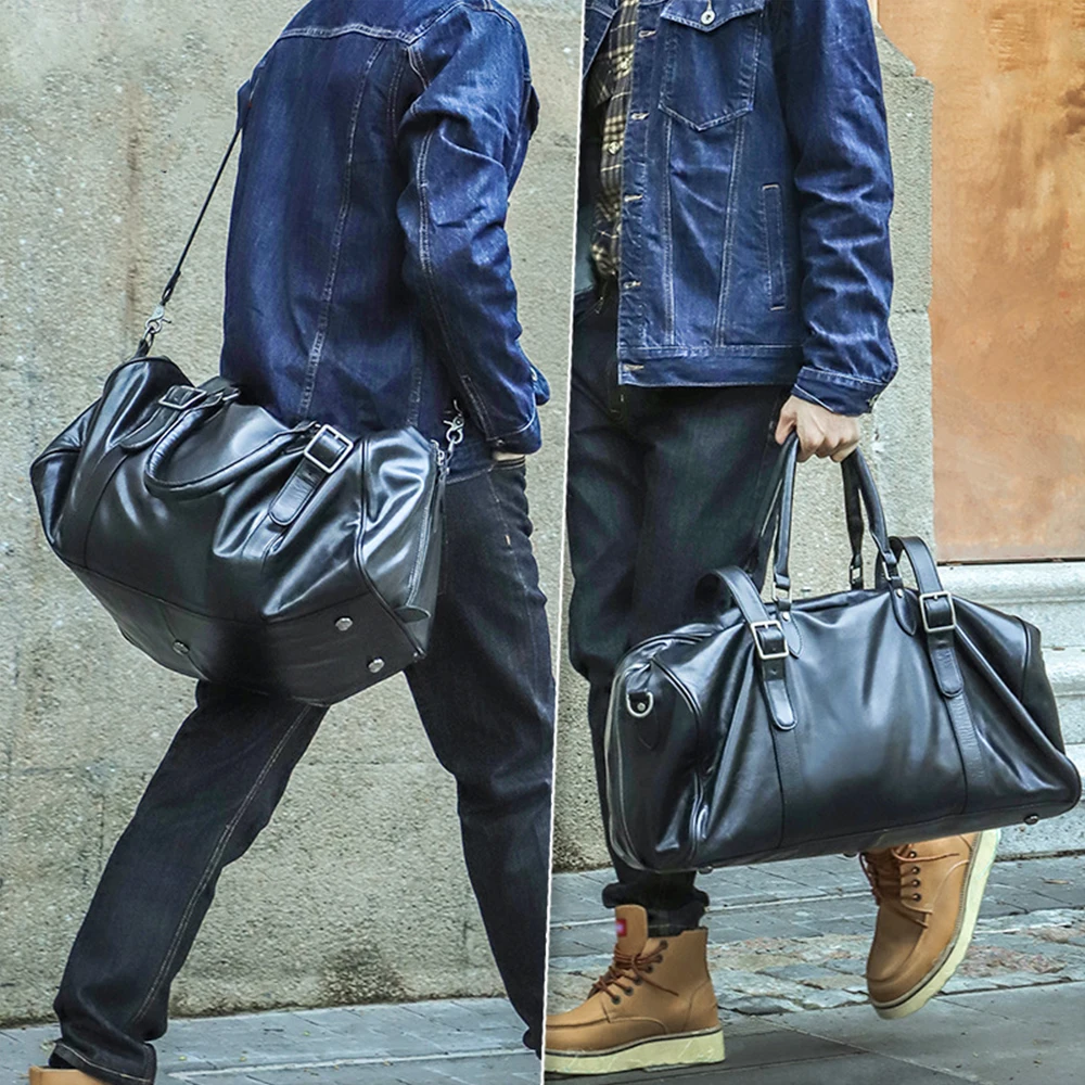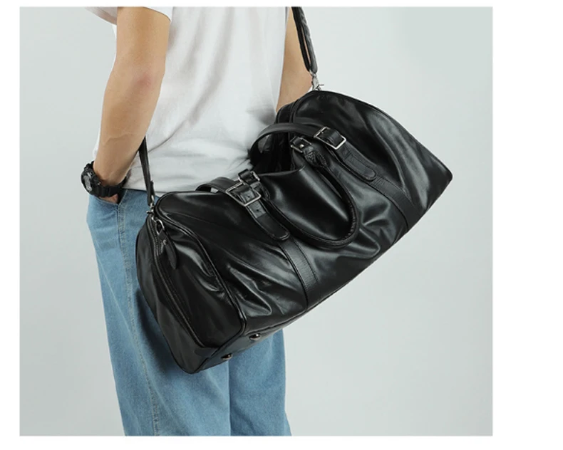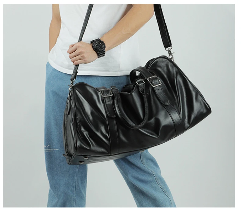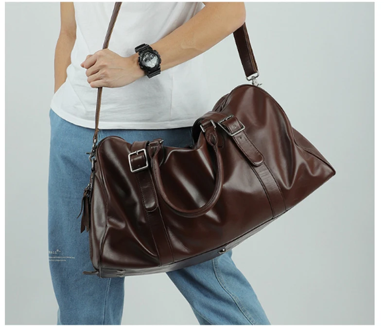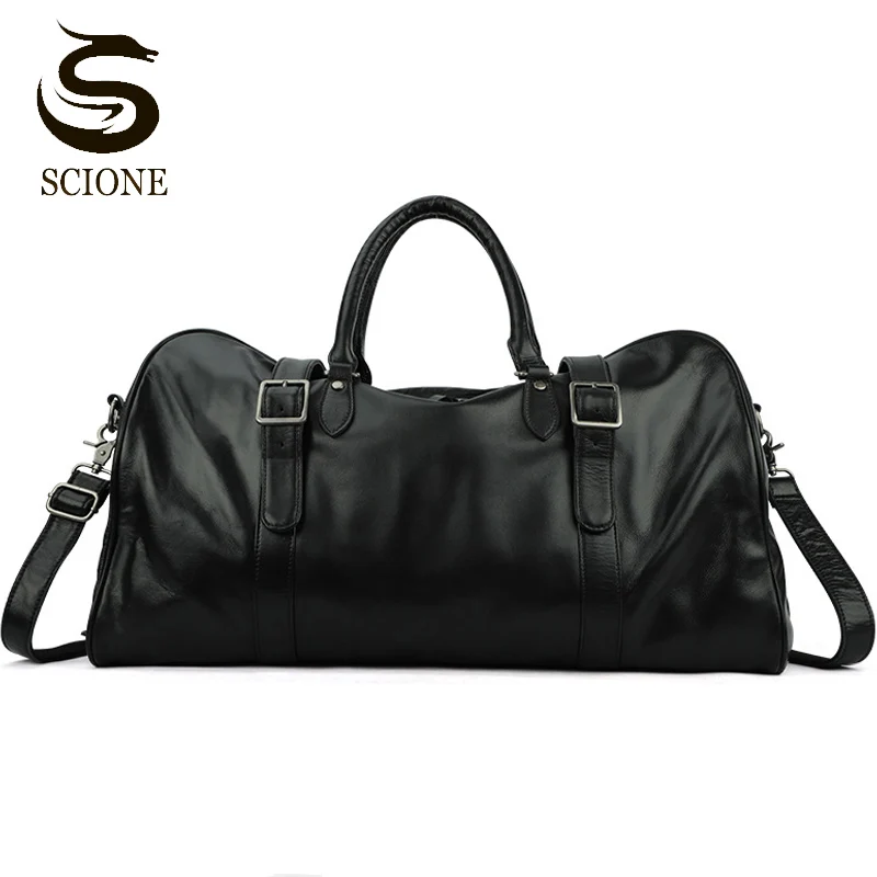 Мужская сумка из натуральной кожи, Мужская большая Вместительная дорожная сумка, винтажная сумка на плечо, спортивные сумки для спортзала, черный коричневый вещевой мешок XA200M